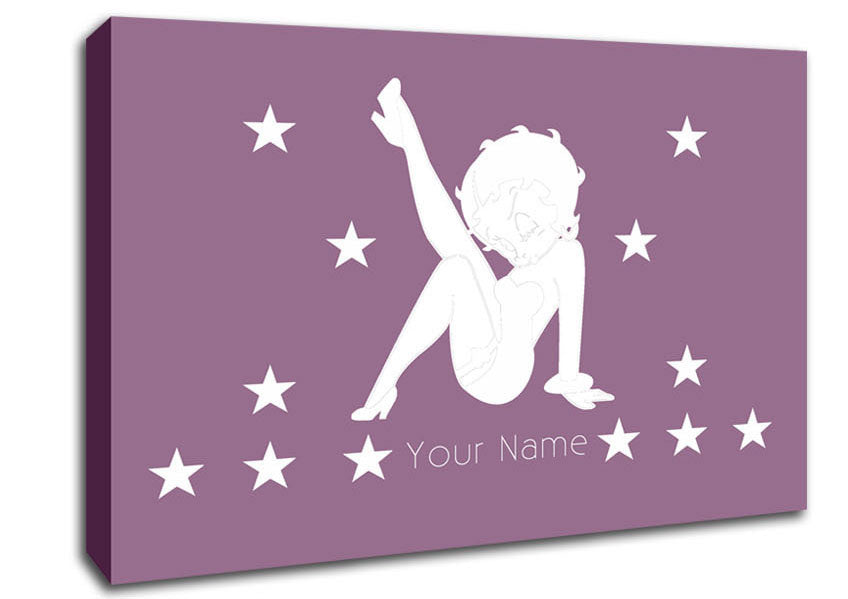 Betty Boop Your Name Stars Dusty Pink Canvas Print handmade in the UK. Stretched over a 2 inch thick wooden box frame, ready to hang on your wall.