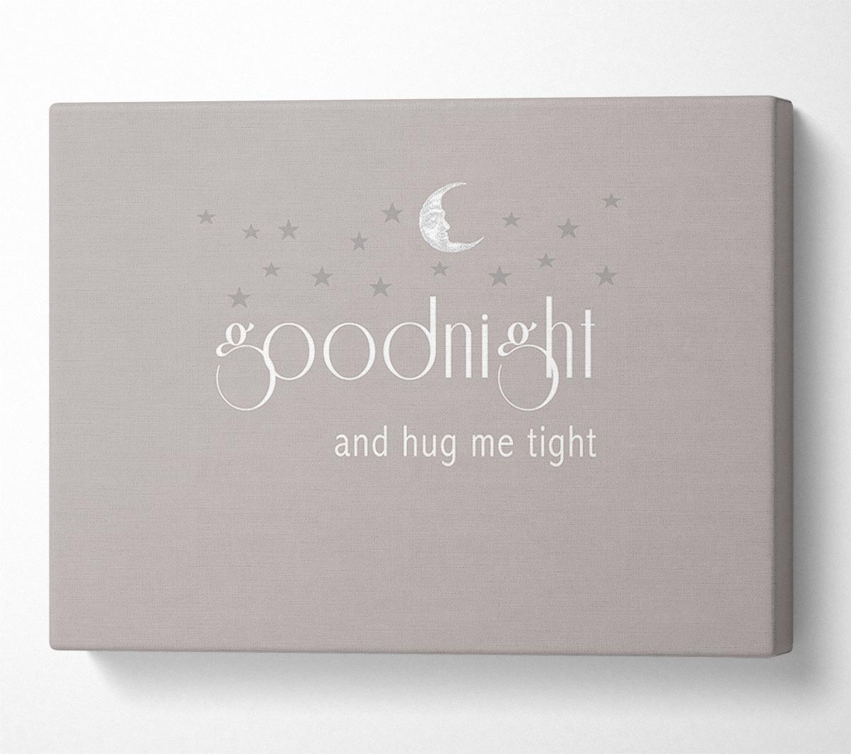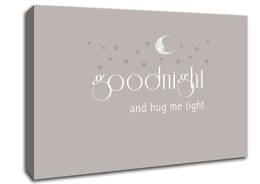 Boys room Quote Good Night And Hug Me Tight Beige Canvas Print handmade in the UK. Stretched over a 2 inch thick wooden box frame, ready to hang on your wall.