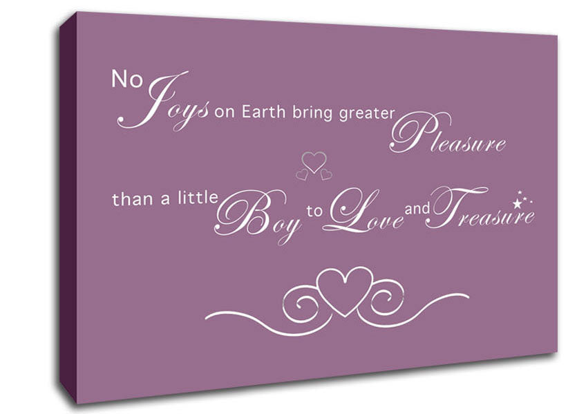 Boys Room Quote No Joys On Earth Bring Pleasure Dusty Pink Canvas Print handmade in the UK. Stretched over a 2 inch thick wooden box frame, ready to hang on your wall.