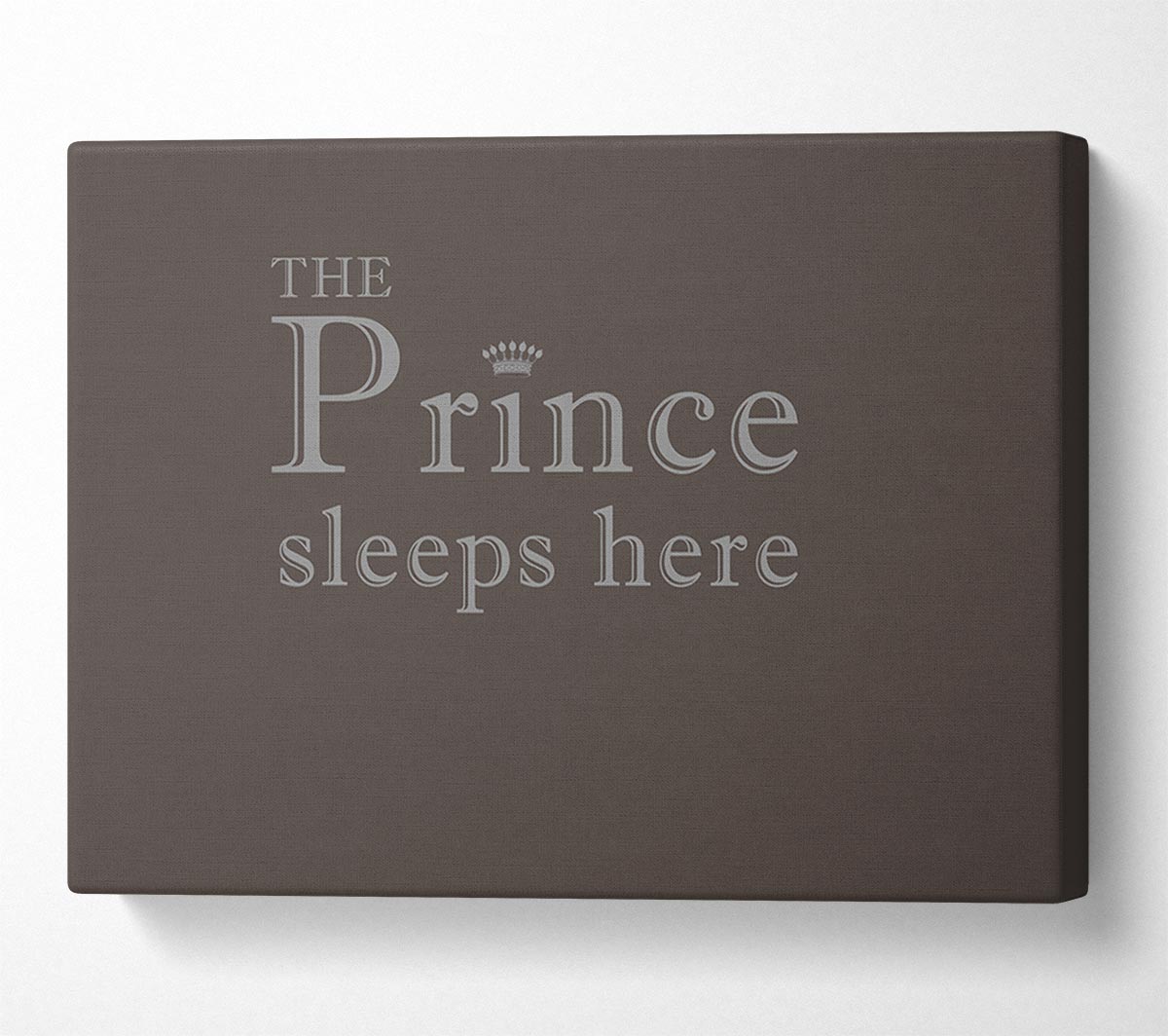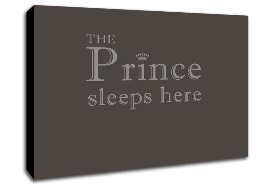 Boys room Quote The Prince Sleeps Here Chocolate Canvas Print handmade in the UK. Stretched over a 2 inch thick wooden box frame, ready to hang on your wall.