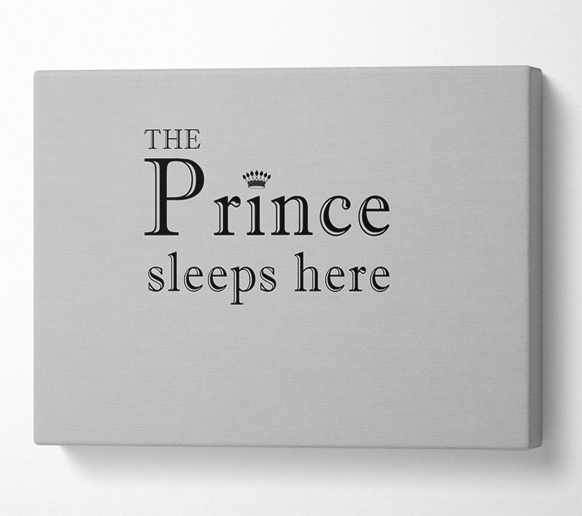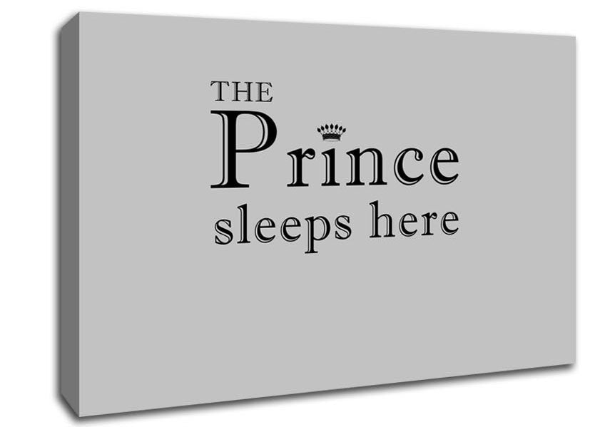 Boys room Quote The Prince Sleeps Here Grey Canvas Print handmade in the UK. Stretched over a 2 inch thick wooden box frame, ready to hang on your wall.