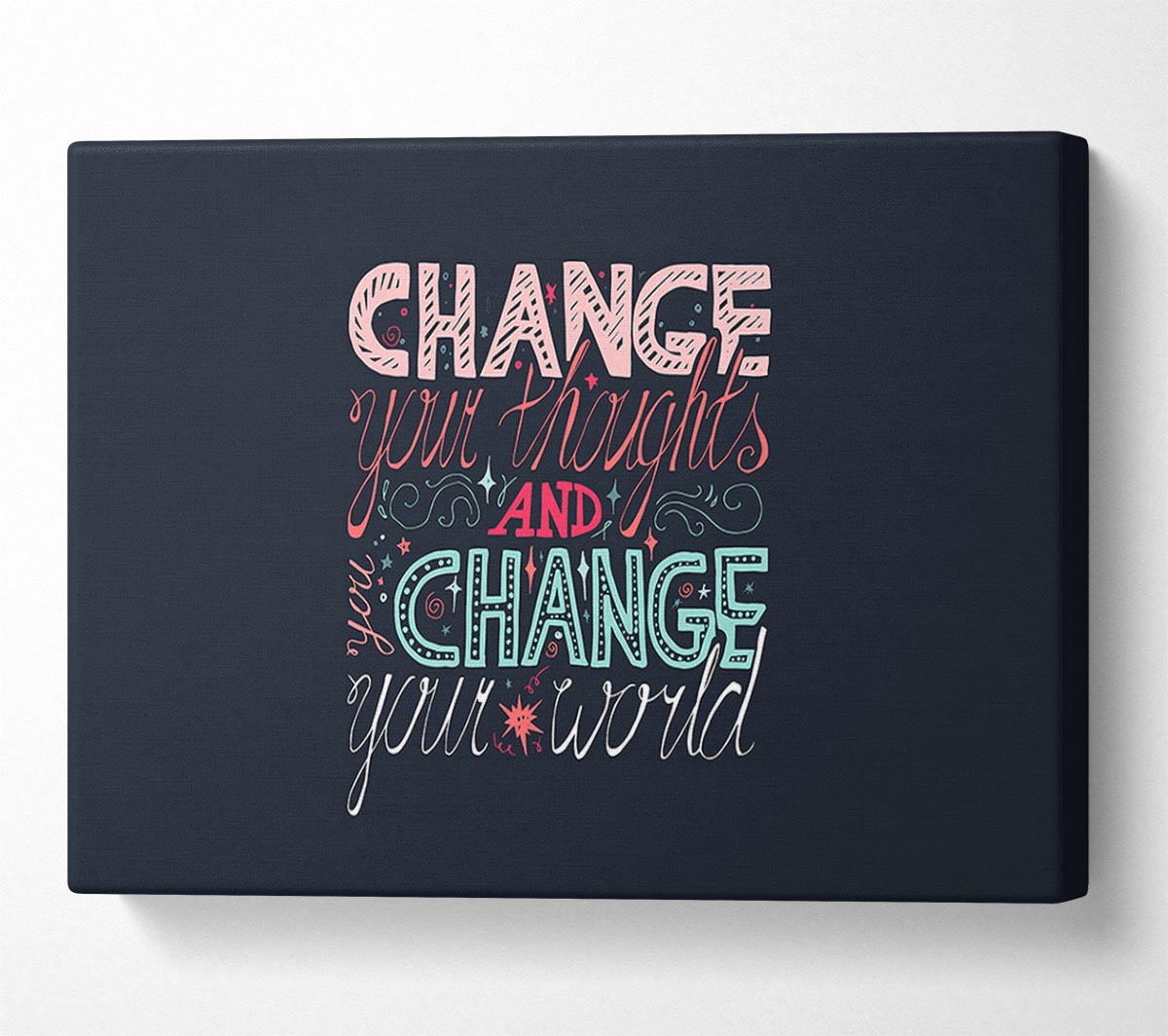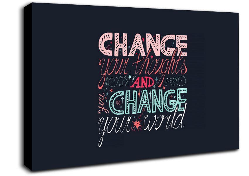 Change Your Thoughts 4 Canvas Print handmade in the UK. Stretched over a 2 inch thick wooden box frame, ready to hang on your wall.