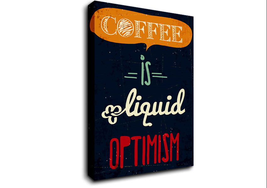 Coffee Is Liquid Optimism 1 Canvas Print handmade in the UK. Stretched over a 2 inch thick wooden box frame, ready to hang on your wall.