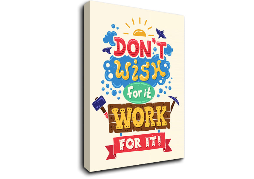 Don't Wish For It Work For It 2 Canvas Print handmade in the UK. Stretched over a 2 inch thick wooden box frame, ready to hang on your wall.