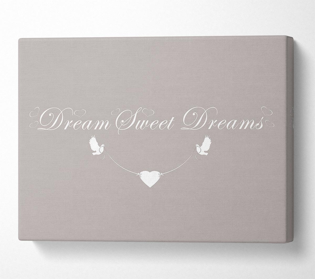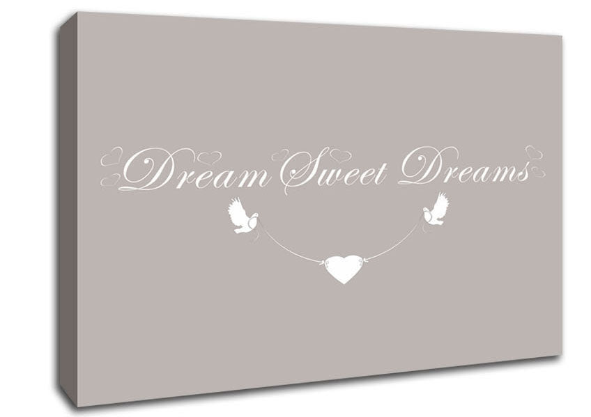 Dream Sweet Dreams Beige Canvas Print handmade in the UK. Stretched over a 2 inch thick wooden box frame, ready to hang on your wall.
