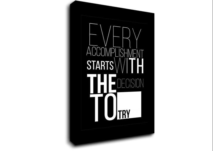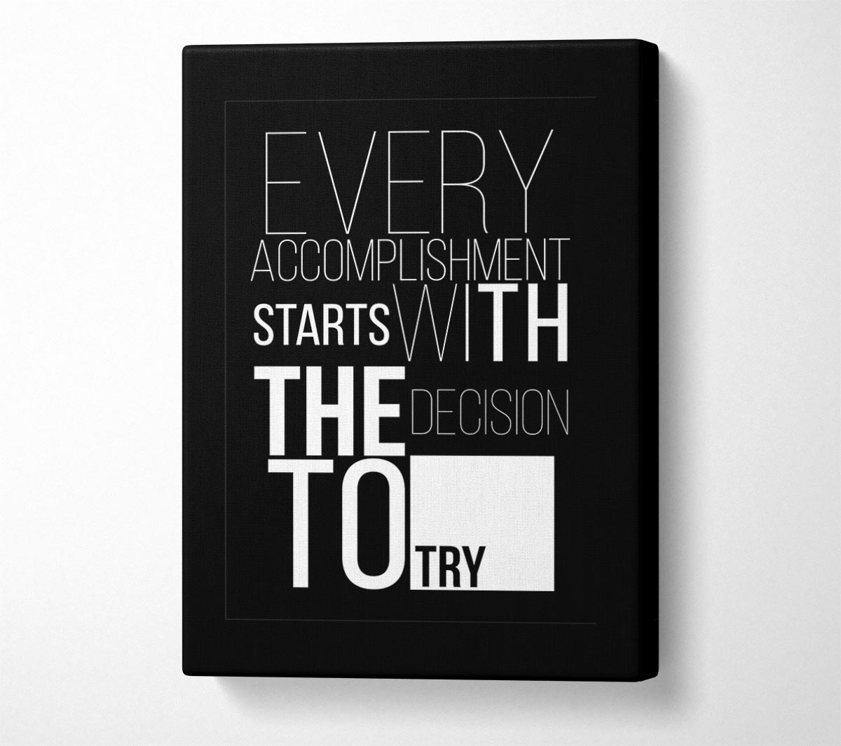 Every Accomplishment Canvas Print handmade in the UK. Stretched over a 2 inch thick wooden box frame, ready to hang on your wall.