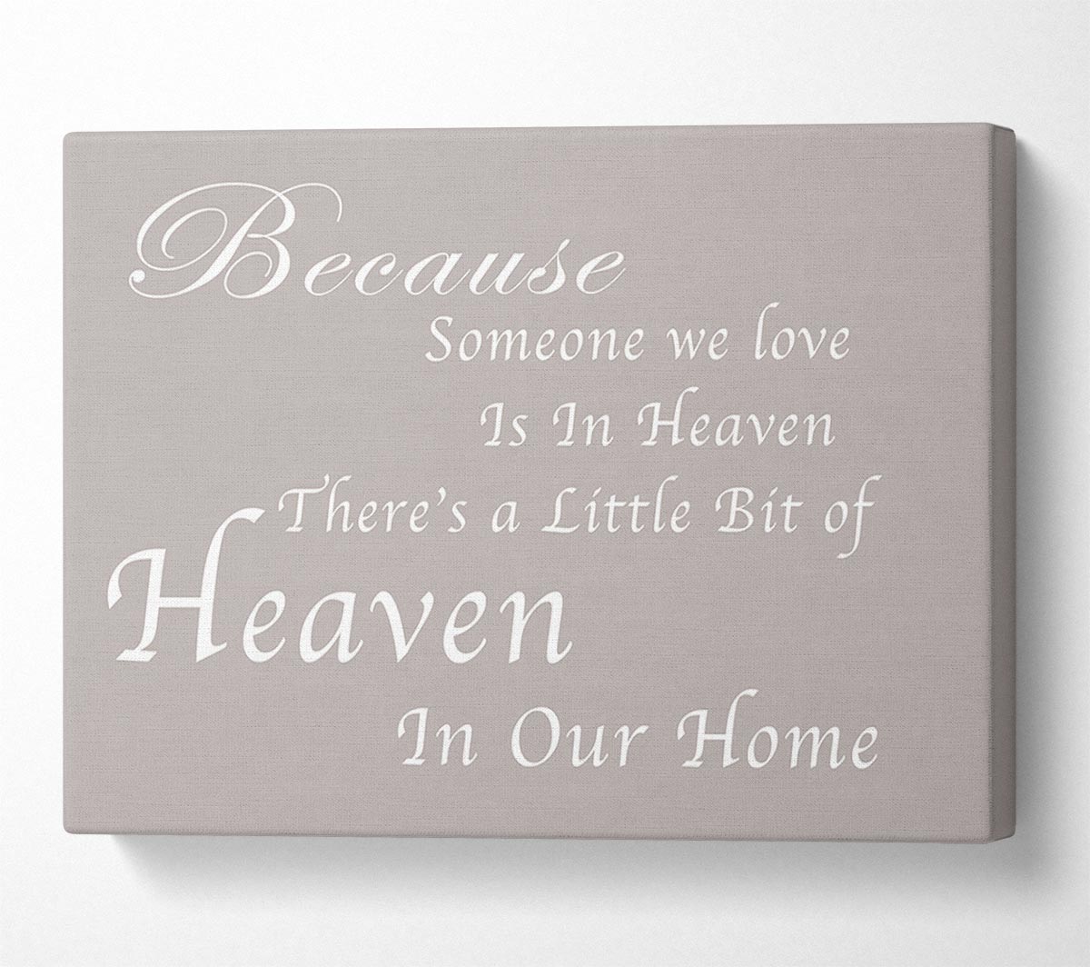 Family Quote Because Someone We Love 2 Beige Canvas Print handmade in the UK. Stretched over a 2 inch thick wooden box frame, ready to hang on your wall.
