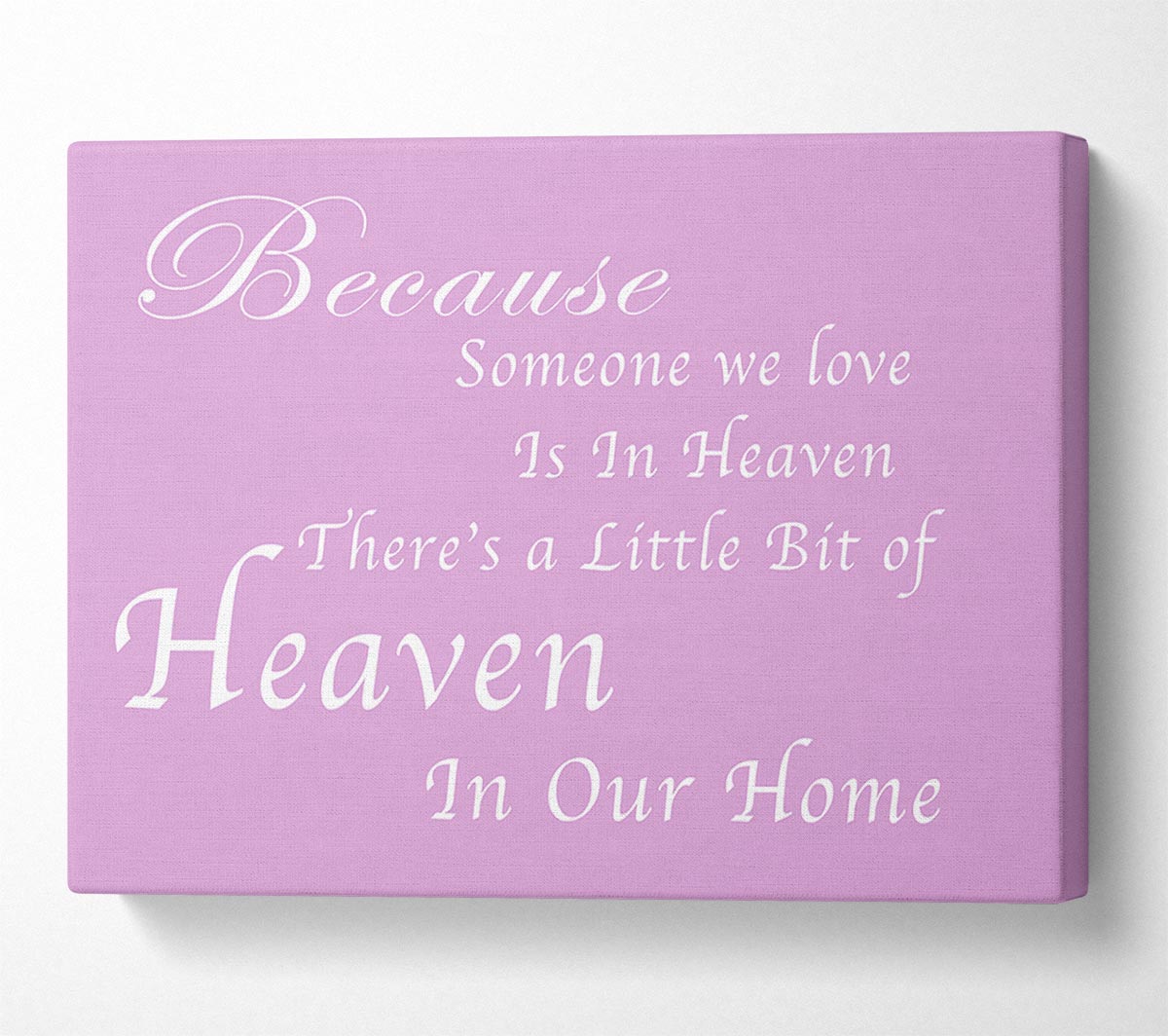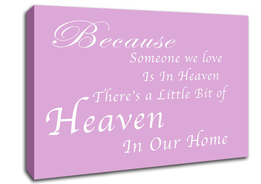 Family Quote Because Someone We Love 2 Pink Canvas Print handmade in the UK. Stretched over a 2 inch thick wooden box frame, ready to hang on your wall.