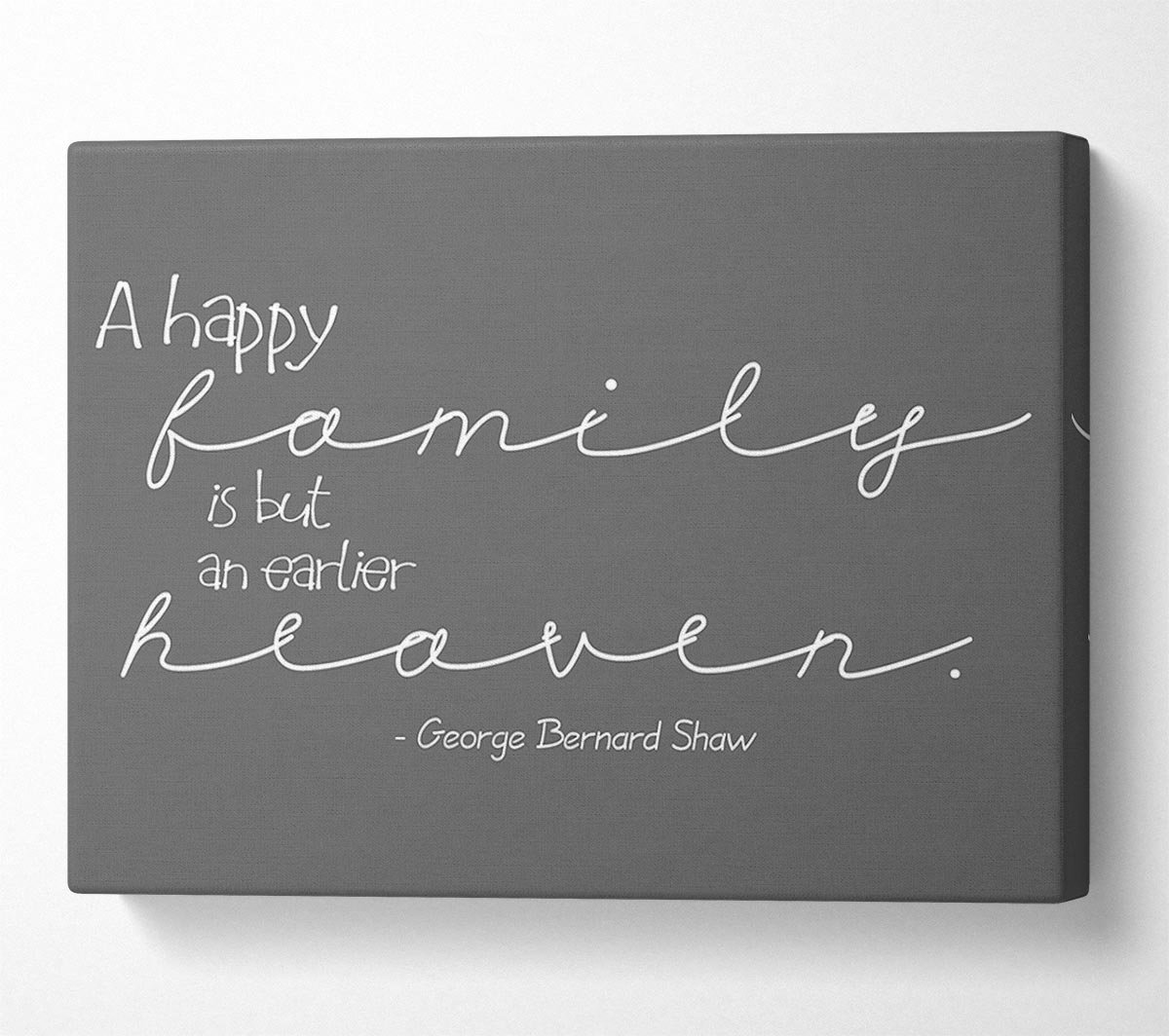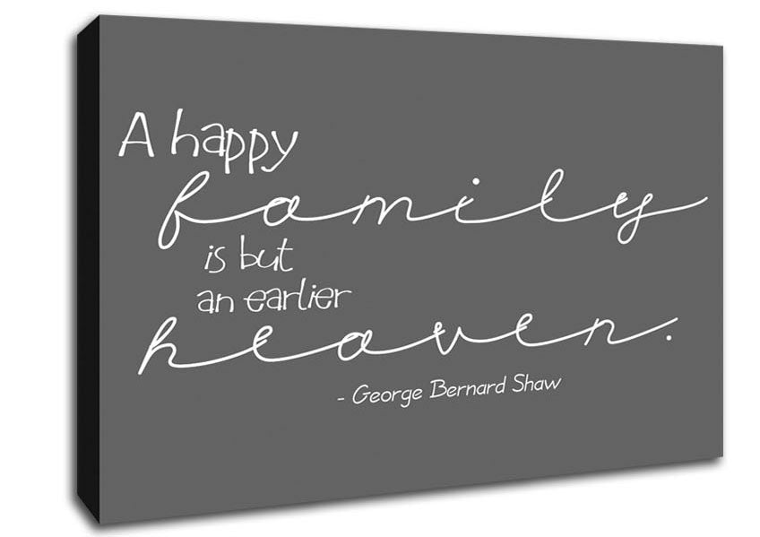 Family Quote George Bernard Shaw A Happy Family Grey Canvas Print handmade in the UK. Stretched over a 2 inch thick wooden box frame, ready to hang on your wall.