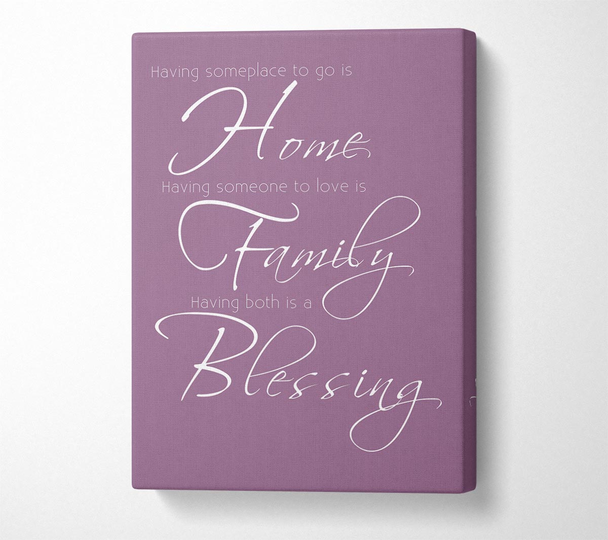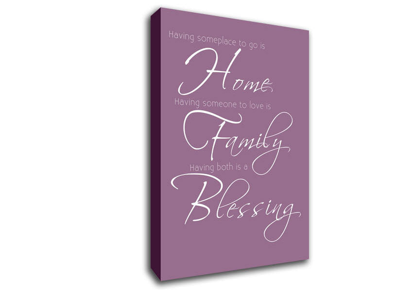 Family Quote Having Someplace To Go Is Home 2 Dusty Pink Canvas Print handmade in the UK. Stretched over a 2 inch thick wooden box frame, ready to hang on your wall.