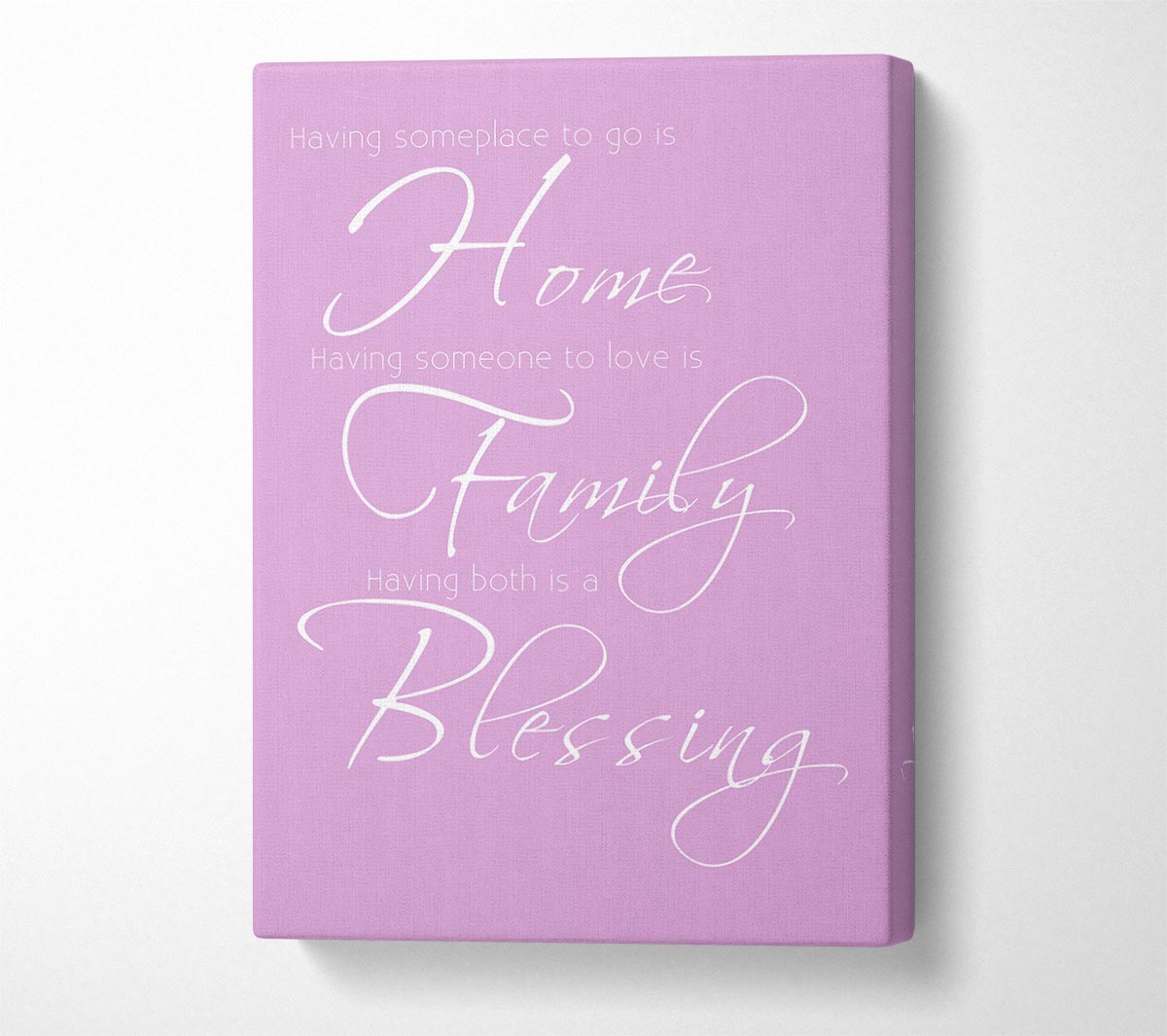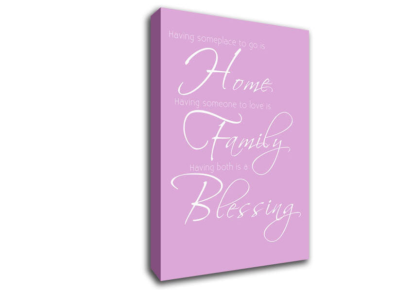 Family Quote Having Someplace To Go Is Home 2 Pink Canvas Print handmade in the UK. Stretched over a 2 inch thick wooden box frame, ready to hang on your wall.