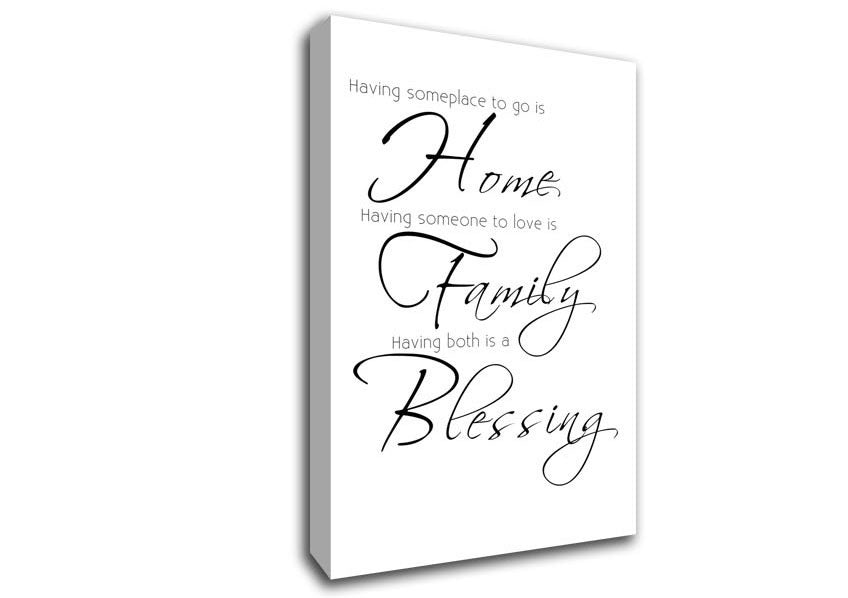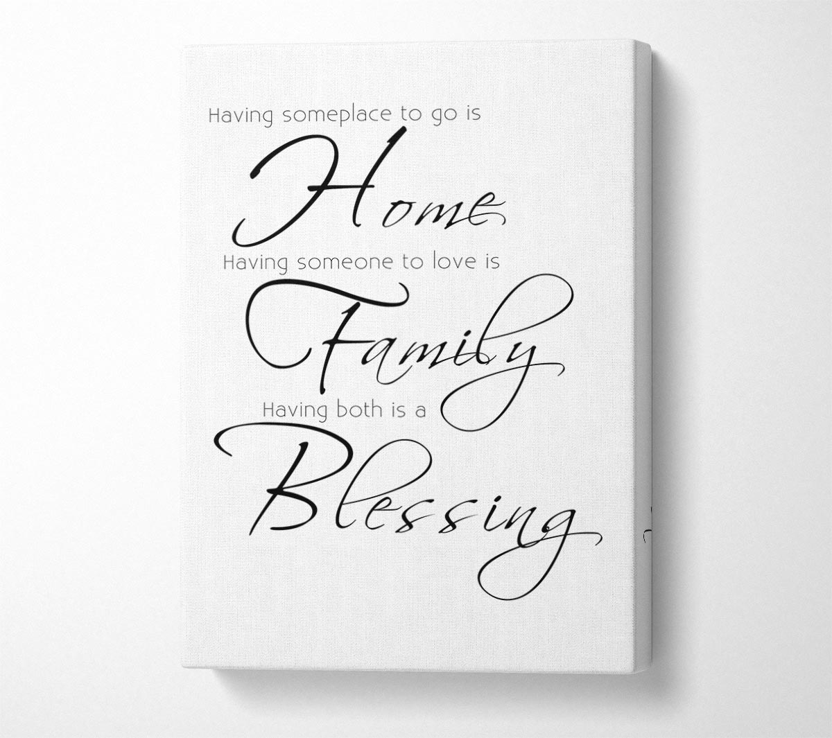 Family Quote Having Someplace To Go Is Home 2 White Canvas Print handmade in the UK. Stretched over a 2 inch thick wooden box frame, ready to hang on your wall.