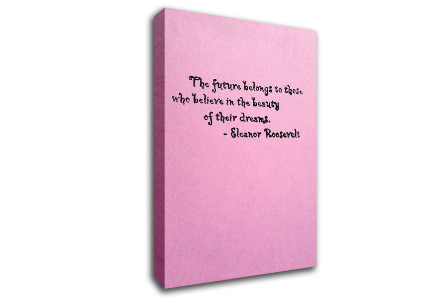 Famous Quote Eleanor Roosevelt The Future Belongs To Those Canvas Print handmade in the UK. Stretched over a 2 inch thick wooden box frame, ready to hang on your wall.