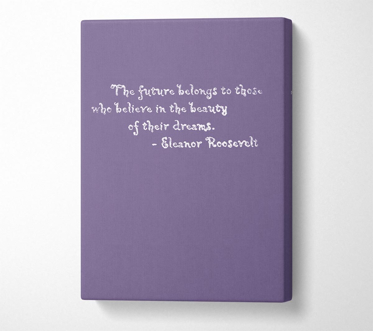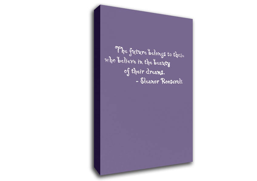 Famous Quote Eleanor Roosevelt The Future Belongs To Those Lilac Canvas Print handmade in the UK. Stretched over a 2 inch thick wooden box frame, ready to hang on your wall.