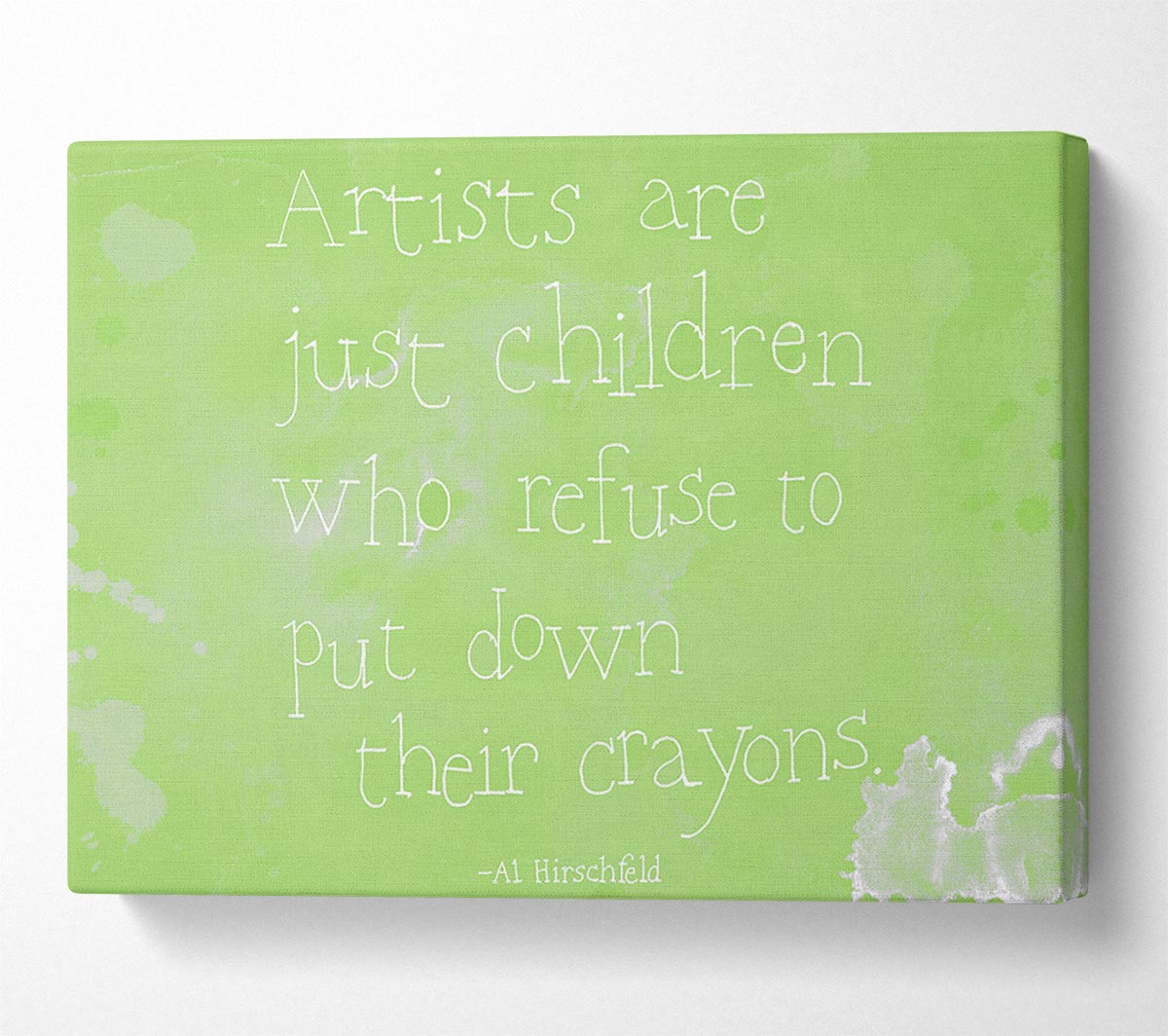 Funny Quote Hirschfeld Artists Are Just Children Lime Green Canvas Print handmade in the UK. Stretched over a 2 inch thick wooden box frame, ready to hang on your wall.