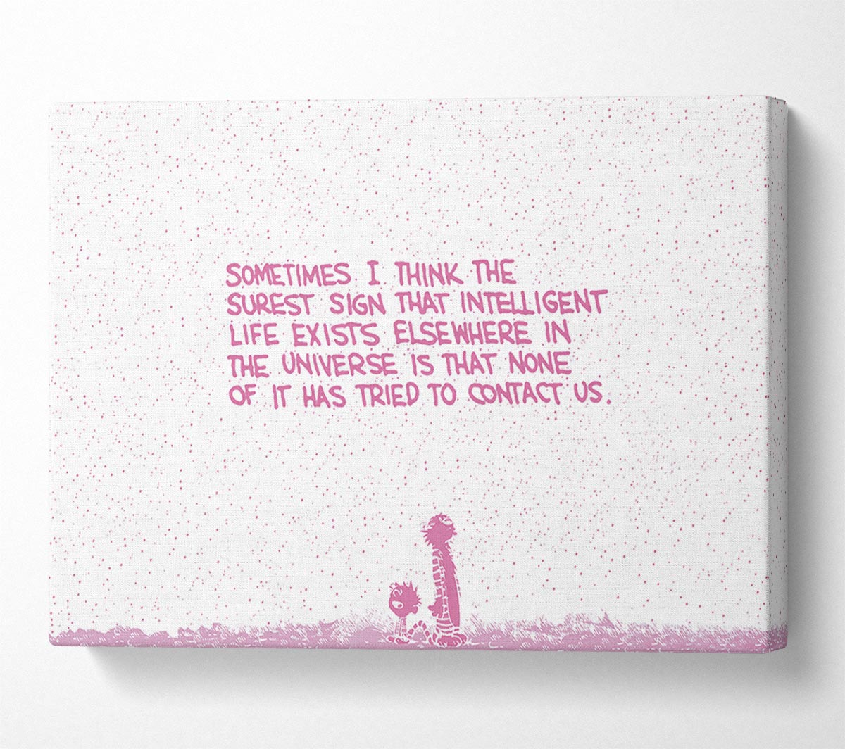 Funny Quote Sometimes I Think The Surest Sign Pink Canvas Print handmade in the UK. Stretched over a 2 inch thick wooden box frame, ready to hang on your wall.