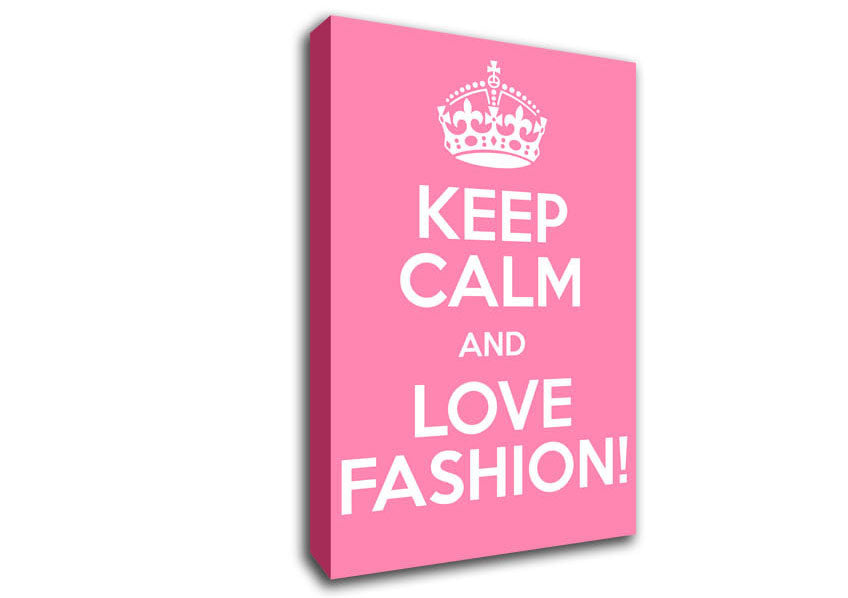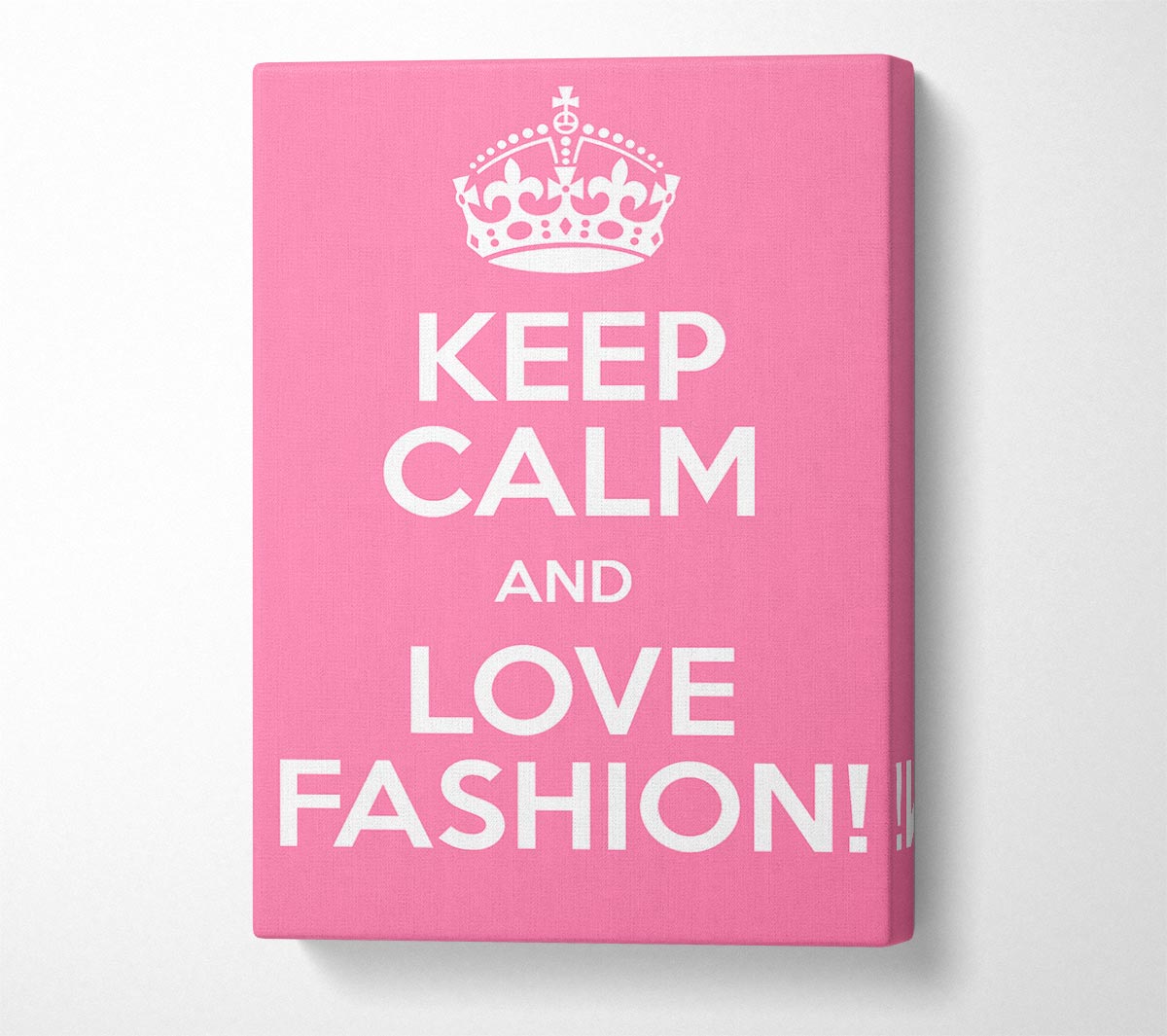 Girls Room Quote Keep Calm Fashion Canvas Print handmade in the UK. Stretched over a 2 inch thick wooden box frame, ready to hang on your wall.