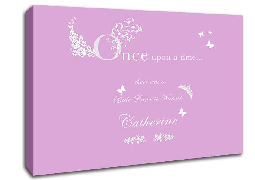 Girls Room Quote Once Upon A Time Your Name Pink Canvas Print handmade in the UK. Stretched over a 2 inch thick wooden box frame, ready to hang on your wall.