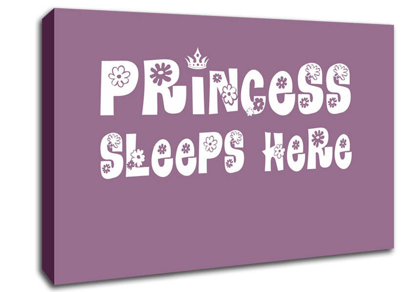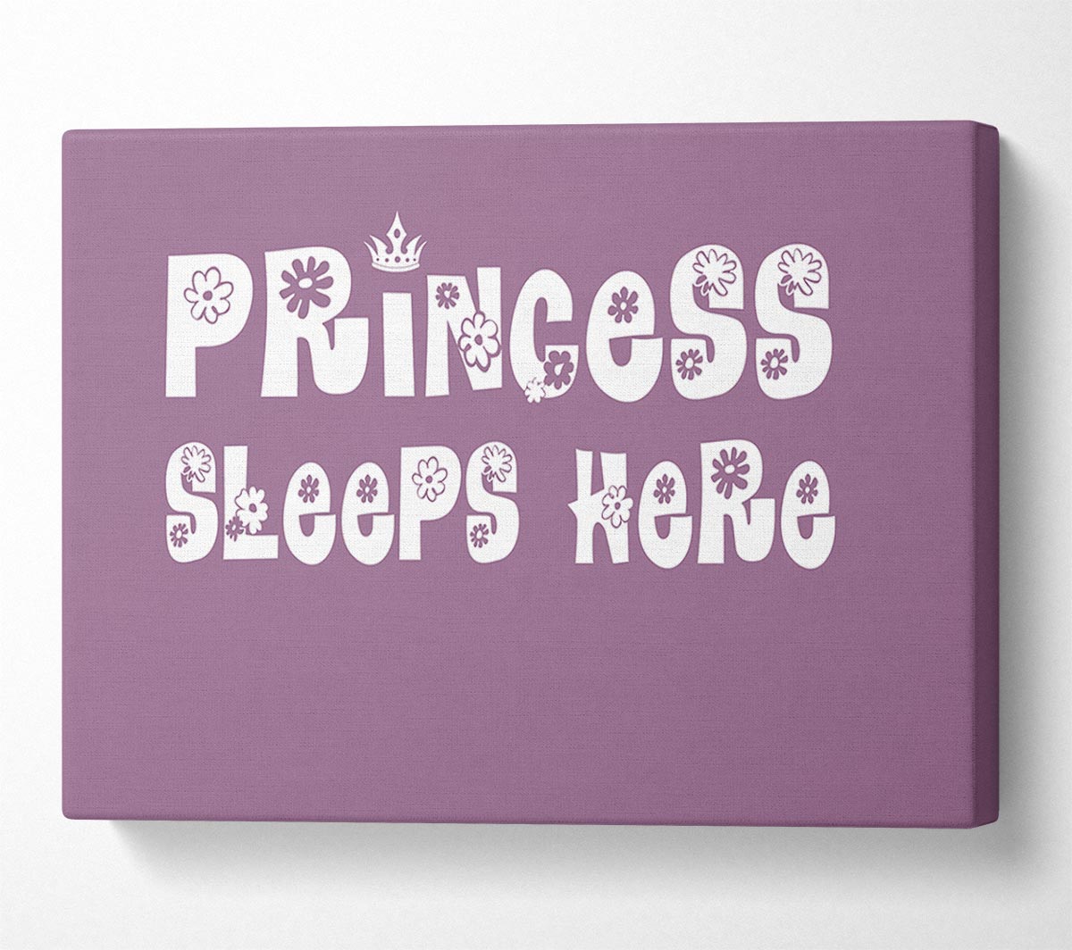 Girls Room Quote Princesss Sleeps Here Dusty Pink Canvas Print handmade in the UK. Stretched over a 2 inch thick wooden box frame, ready to hang on your wall.