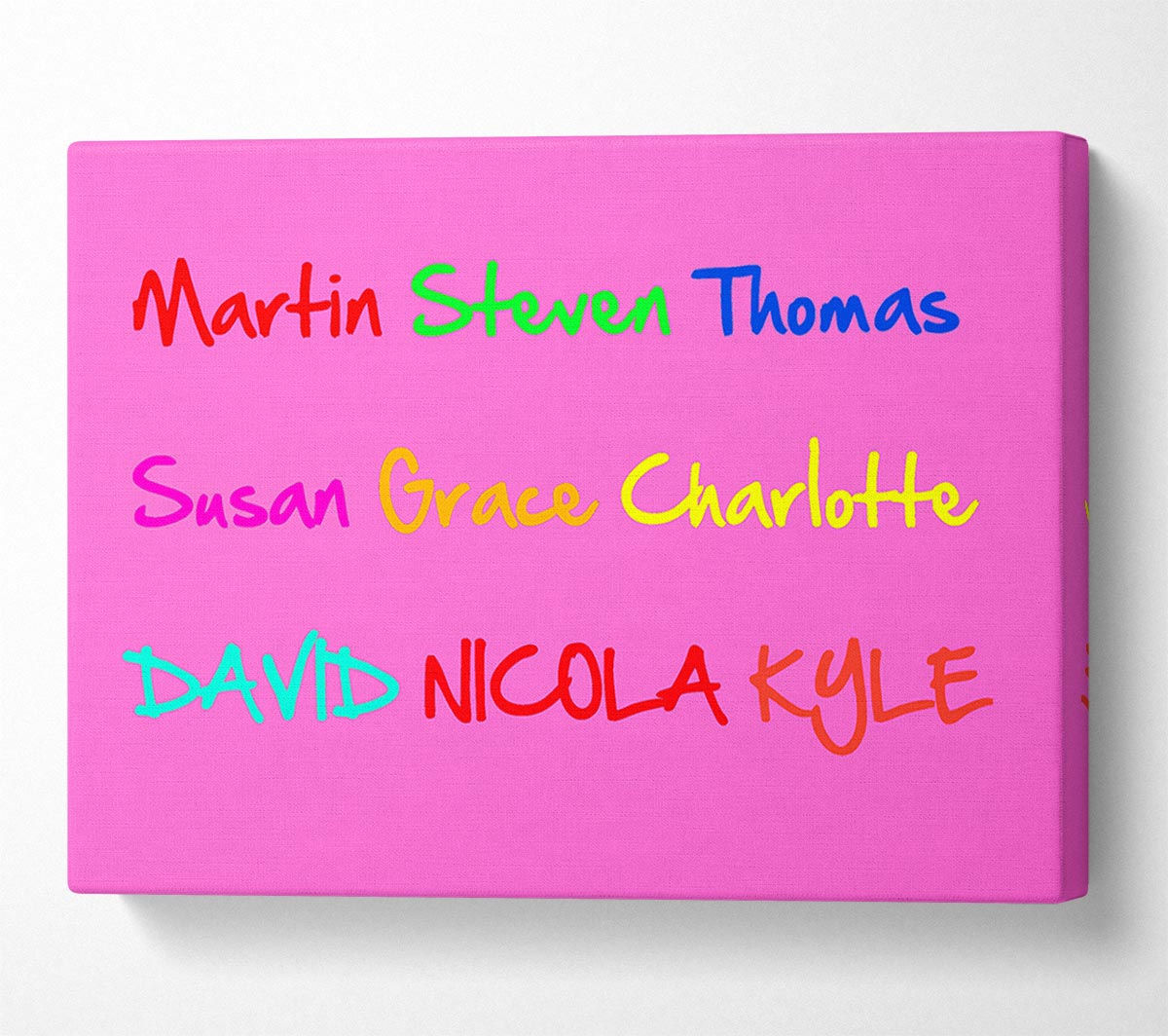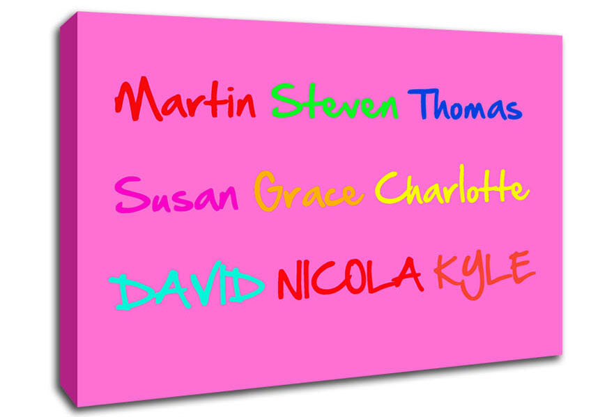 Girls Room Quote Your Name In A Choice Of Colours Vivid Pink Canvas Print handmade in the UK. Stretched over a 2 inch thick wooden box frame, ready to hang on your wall.