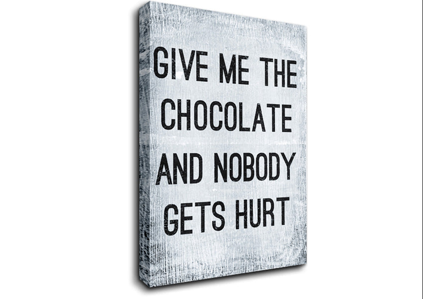Give Me The Chocolate Canvas Print handmade in the UK. Stretched over a 2 inch thick wooden box frame, ready to hang on your wall.