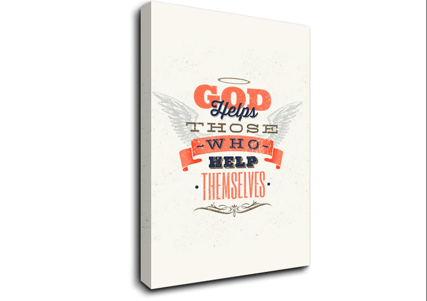 God Helps Those Who Canvas Print handmade in the UK. Stretched over a 2 inch thick wooden box frame, ready to hang on your wall.