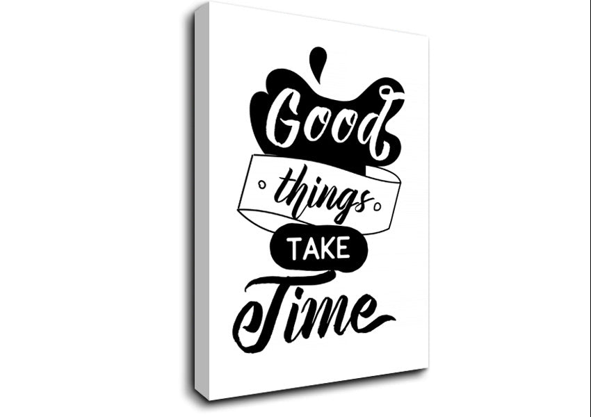 Good Things Take Time Canvas Print handmade in the UK. Stretched over a 2 inch thick wooden box frame, ready to hang on your wall.