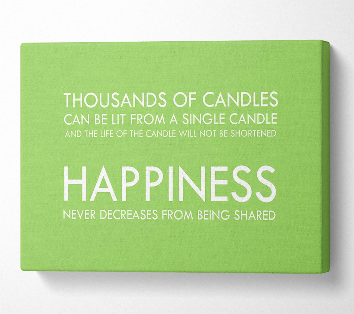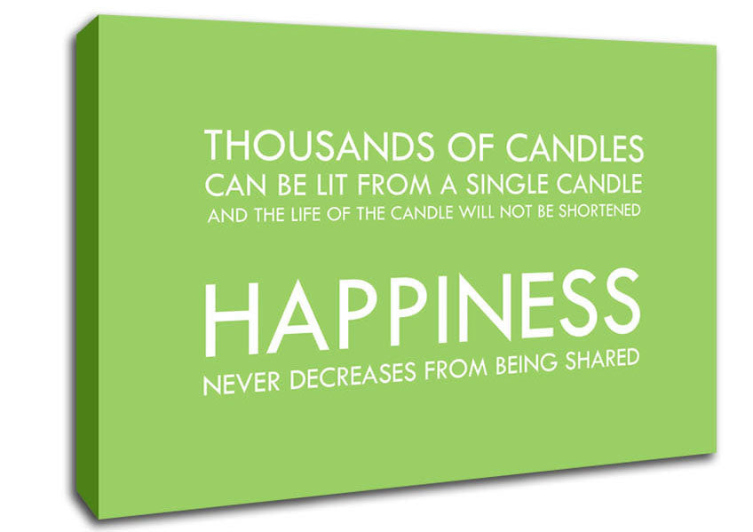 Happiness Never Decreases From Being Shared Lime Green Canvas Print handmade in the UK. Stretched over a 2 inch thick wooden box frame, ready to hang on your wall.