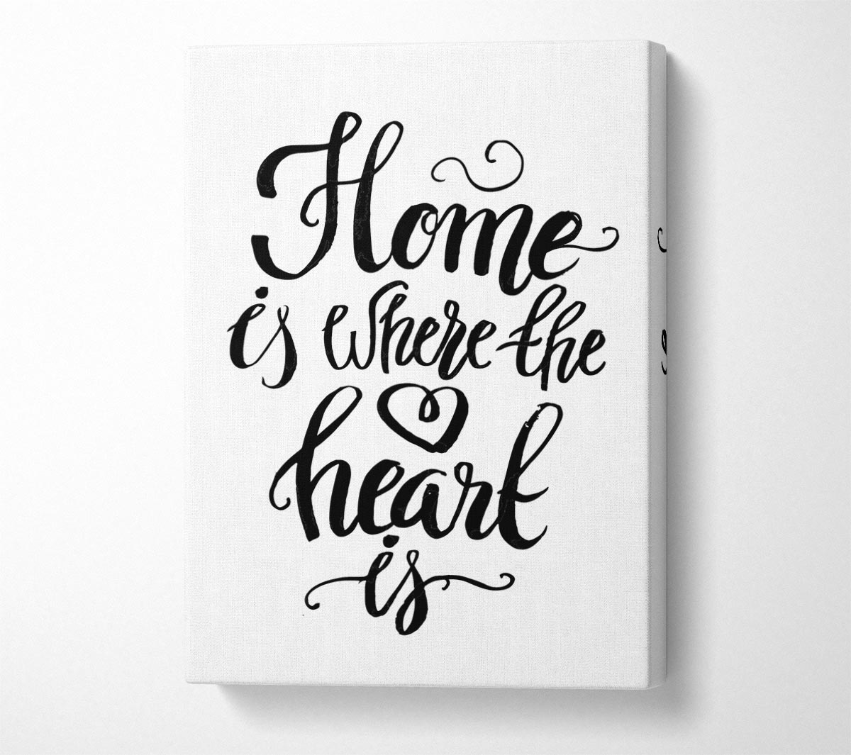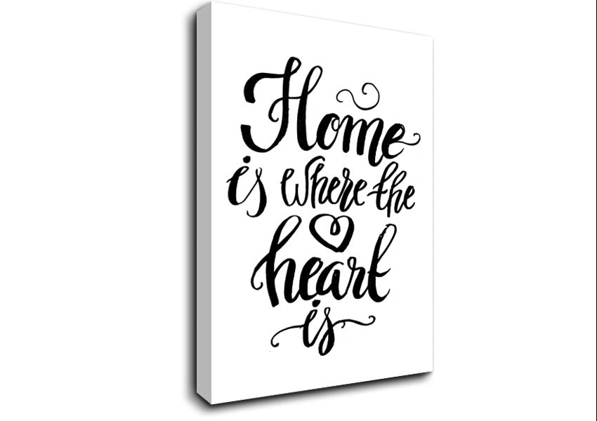 Home Is Where The Heart Is Canvas Print handmade in the UK. Stretched over a 2 inch thick wooden box frame, ready to hang on your wall.