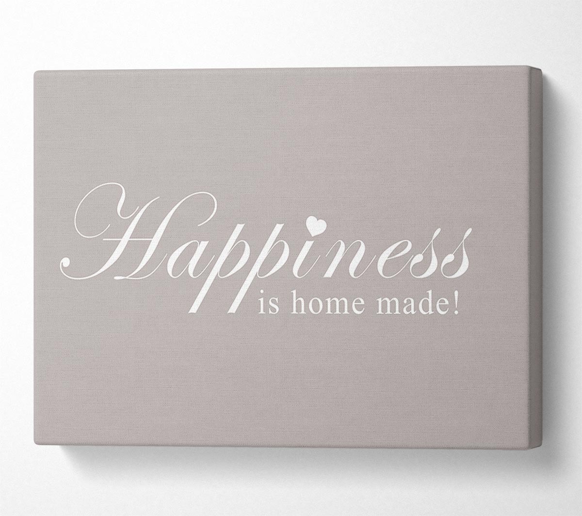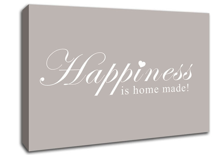 Home Quote Happiness Is Home Made Beige Canvas Print handmade in the UK. Stretched over a 2 inch thick wooden box frame, ready to hang on your wall.