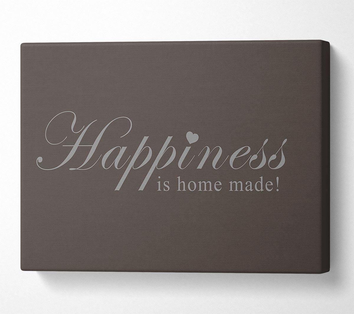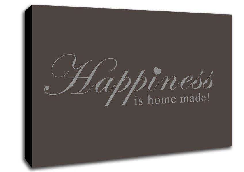 Home Quote Happiness Is Home Made Chocolate Canvas Print handmade in the UK. Stretched over a 2 inch thick wooden box frame, ready to hang on your wall.