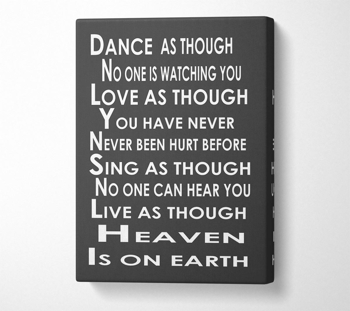Home Quote Heaven Is On Earth Canvas Print handmade in the UK. Stretched over a 2 inch thick wooden box frame, ready to hang on your wall.