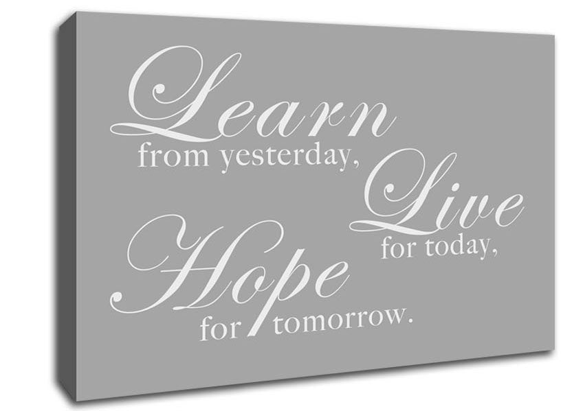 Home Quote Learn Live Hope Grey White Canvas Print handmade in the UK. Stretched over a 2 inch thick wooden box frame, ready to hang on your wall.