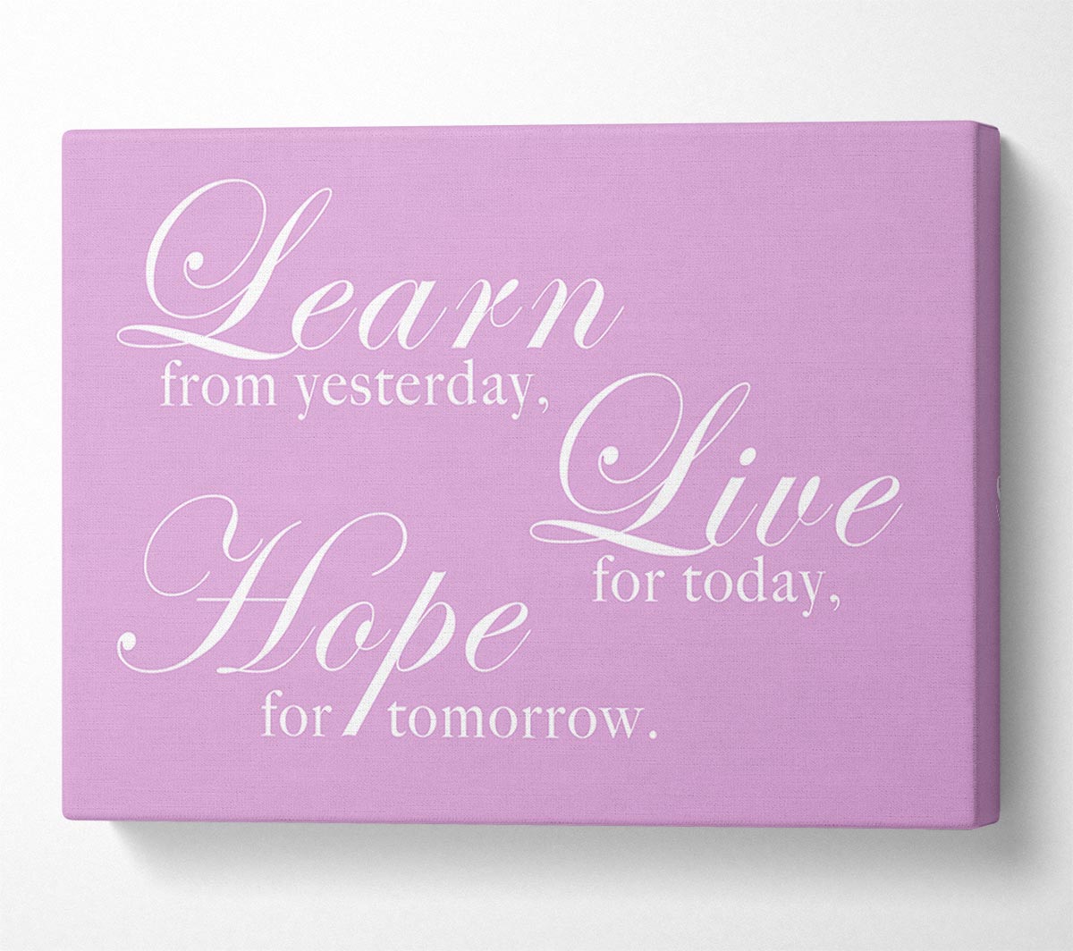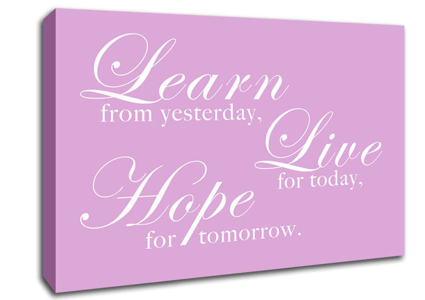 Home Quote Learn Live Hope Pink Canvas Print handmade in the UK. Stretched over a 2 inch thick wooden box frame, ready to hang on your wall.