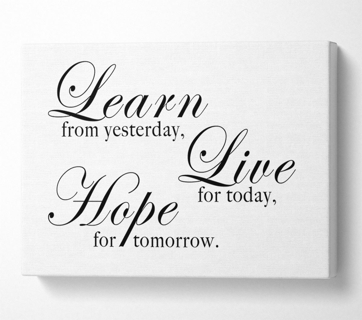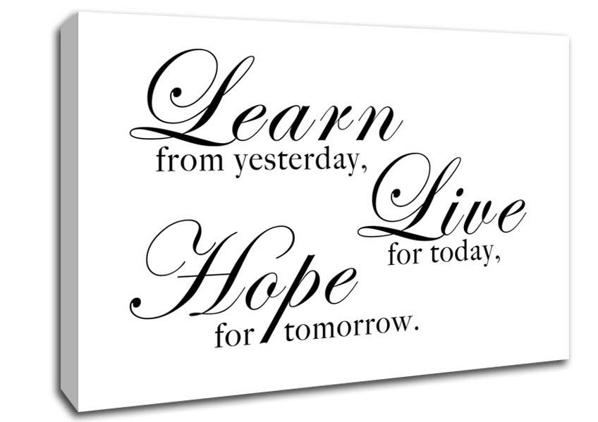 Home Quote Learn Live Hope White Canvas Print handmade in the UK. Stretched over a 2 inch thick wooden box frame, ready to hang on your wall.