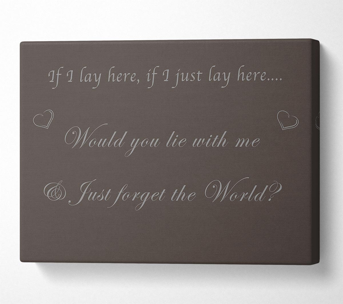 If I Lay Here If I Just Snow Patrol Chocolate Canvas Print handmade in the UK. Stretched over a 2 inch thick wooden box frame, ready to hang on your wall.
