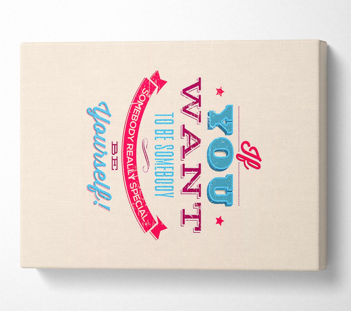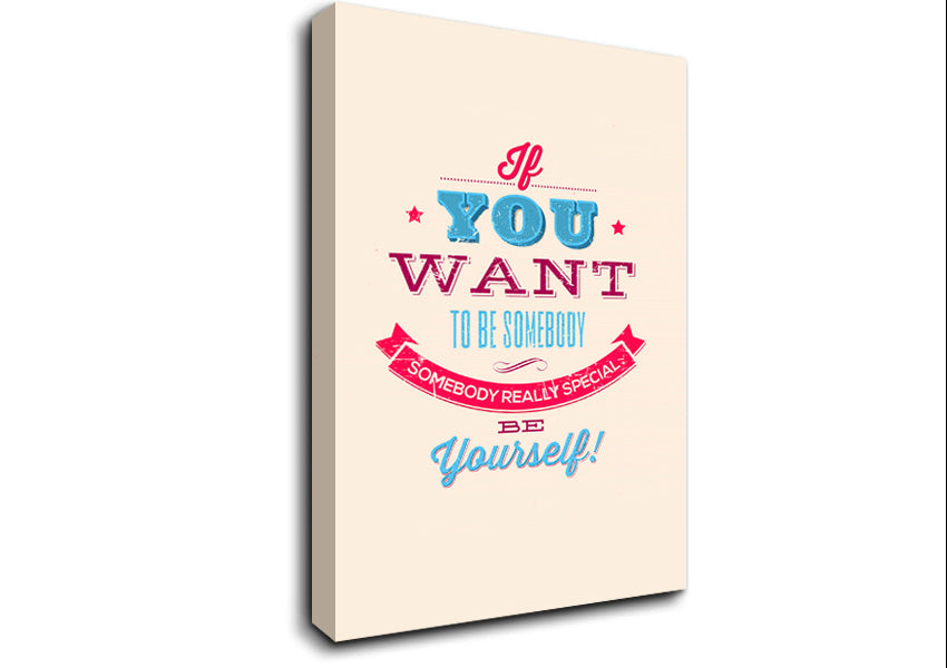 If You Want To Be Somebody Canvas Print handmade in the UK. Stretched over a 2 inch thick wooden box frame, ready to hang on your wall.