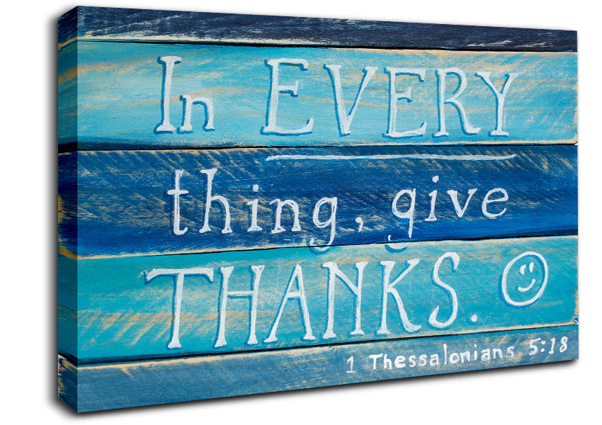 In Every Thing Give Thanks Canvas Print handmade in the UK. Stretched over a 2 inch thick wooden box frame, ready to hang on your wall.