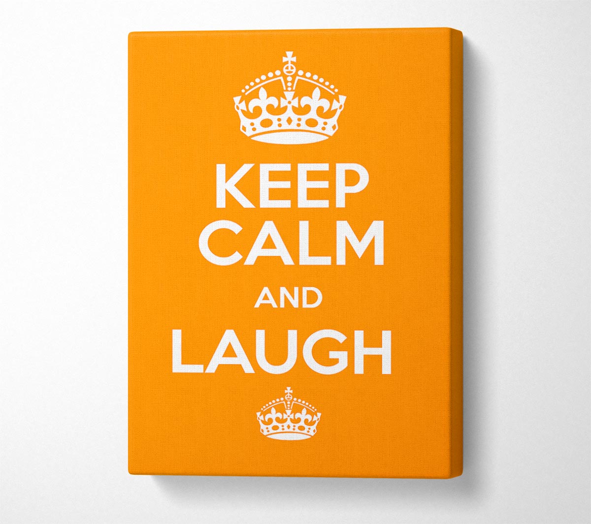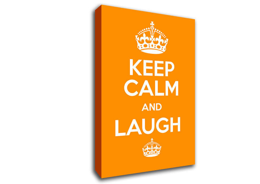 Keep Calm Laugh Orange Canvas Print handmade in the UK. Stretched over a 2 inch thick wooden box frame, ready to hang on your wall.