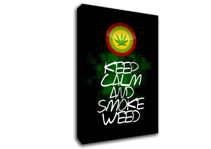 Keep Calm Weed Black Canvas Print handmade in the UK. Stretched over a 2 inch thick wooden box frame, ready to hang on your wall.
