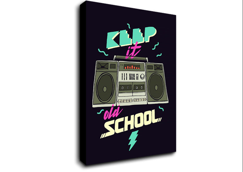 Keep It Old School Canvas Print handmade in the UK. Stretched over a 2 inch thick wooden box frame, ready to hang on your wall.
