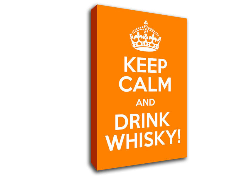 Kitchen Quote Keep Calm Whisky Canvas Print handmade in the UK. Stretched over a 2 inch thick wooden box frame, ready to hang on your wall.