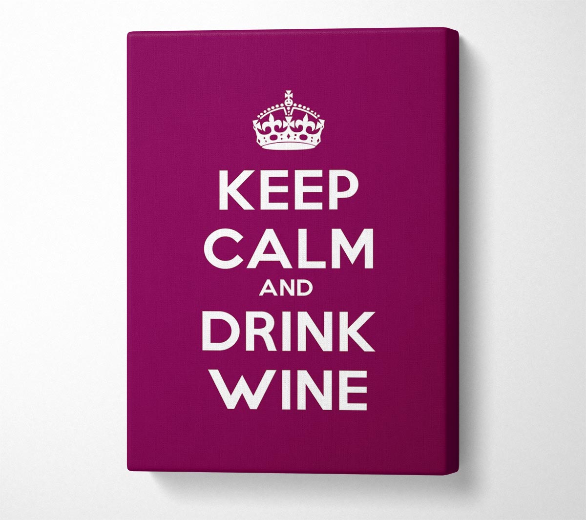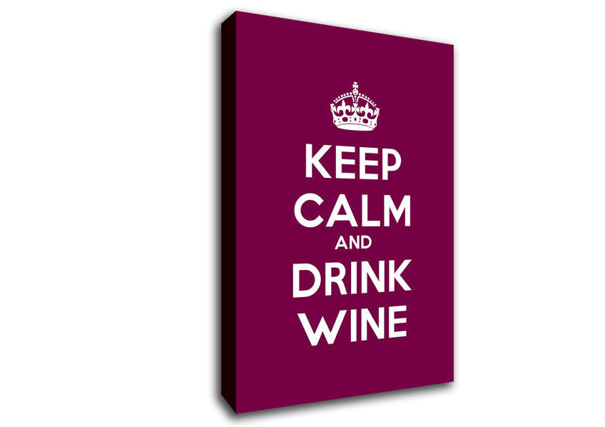 Kitchen Quote Keep Calm Wine Canvas Print handmade in the UK. Stretched over a 2 inch thick wooden box frame, ready to hang on your wall.