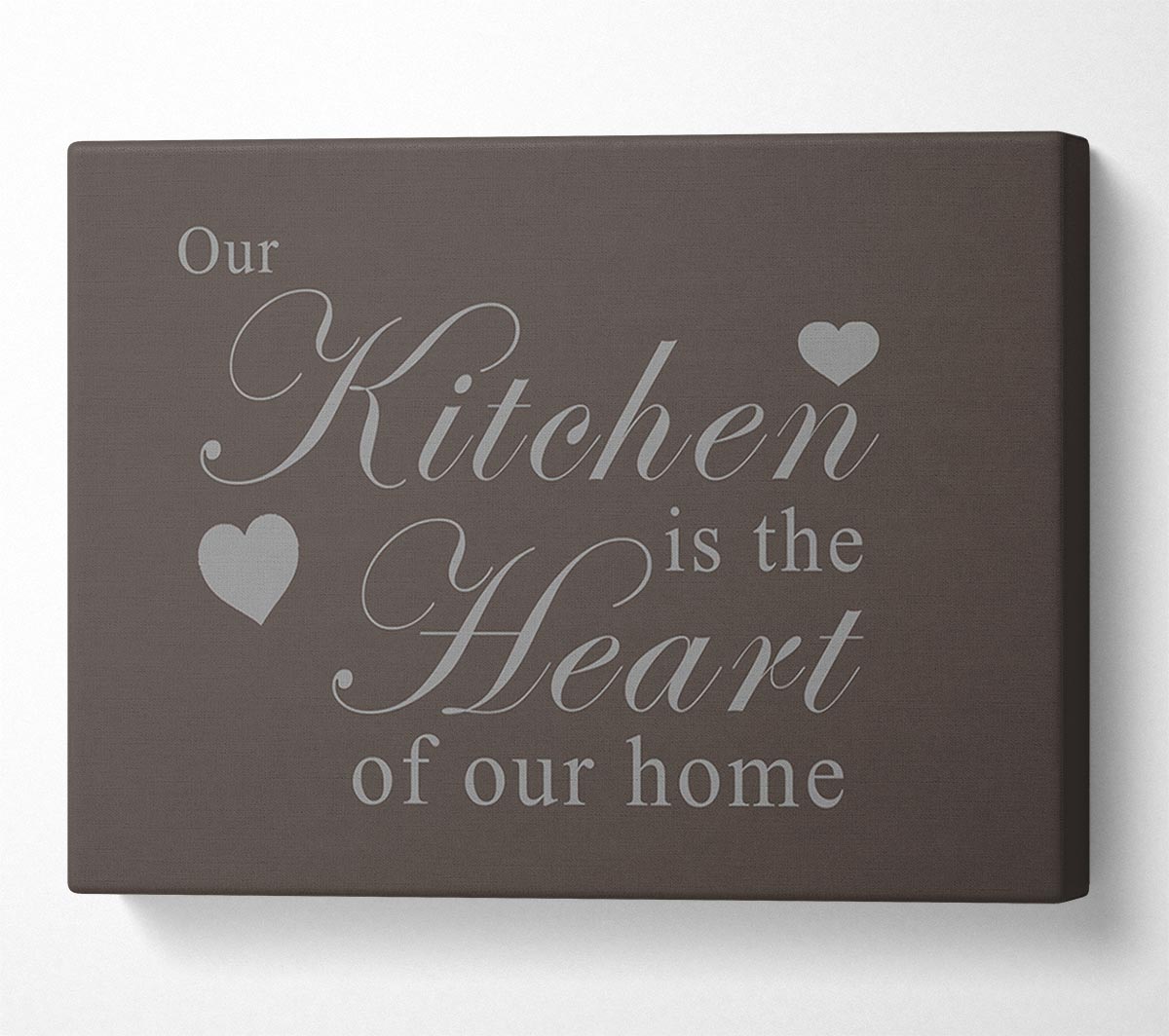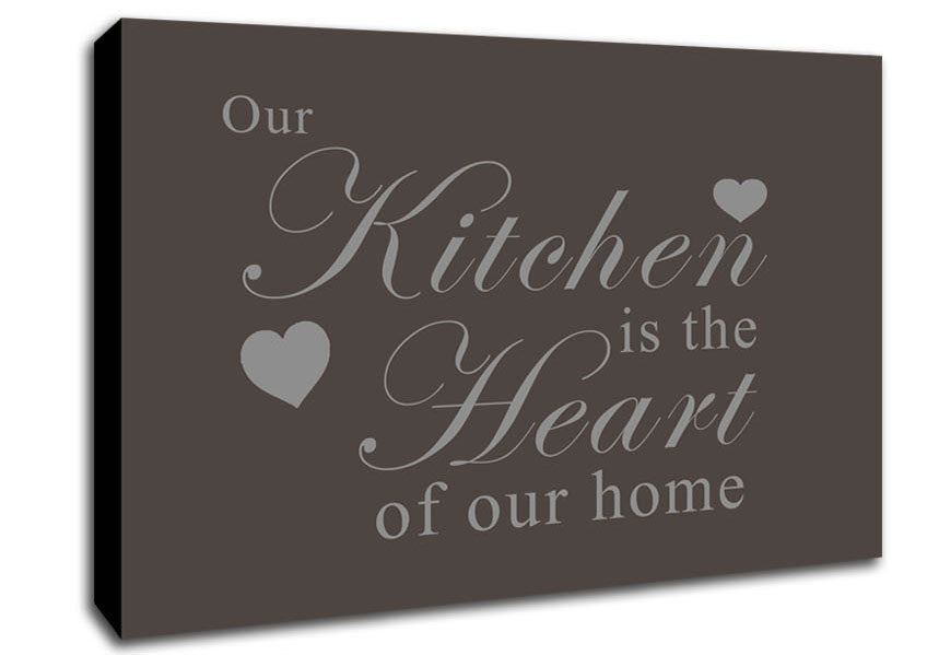 Kitchen Quote Our Kitchen Is The Heart Chocolate Canvas Print handmade in the UK. Stretched over a 2 inch thick wooden box frame, ready to hang on your wall.