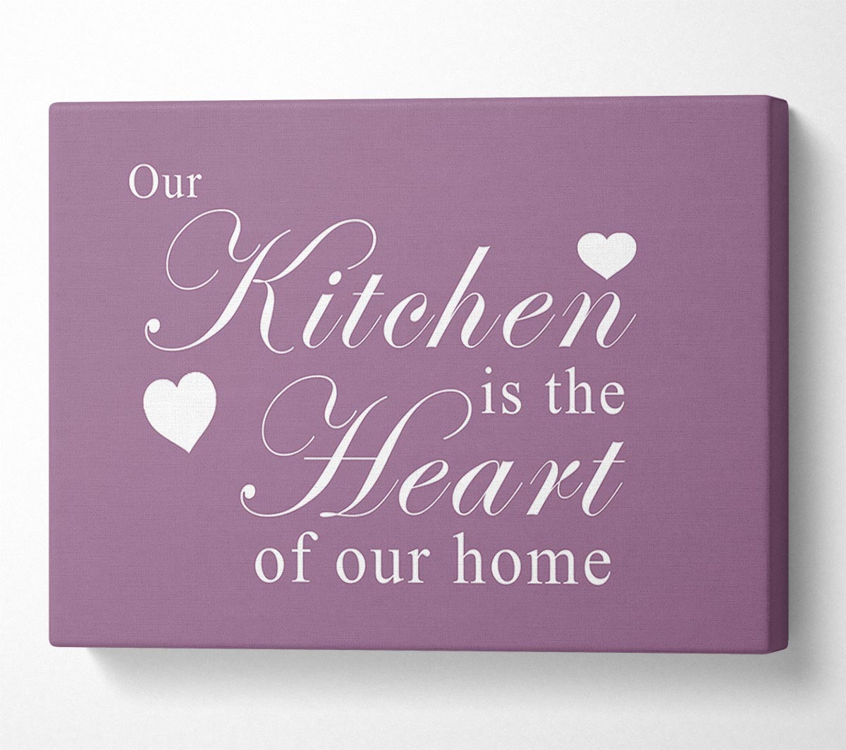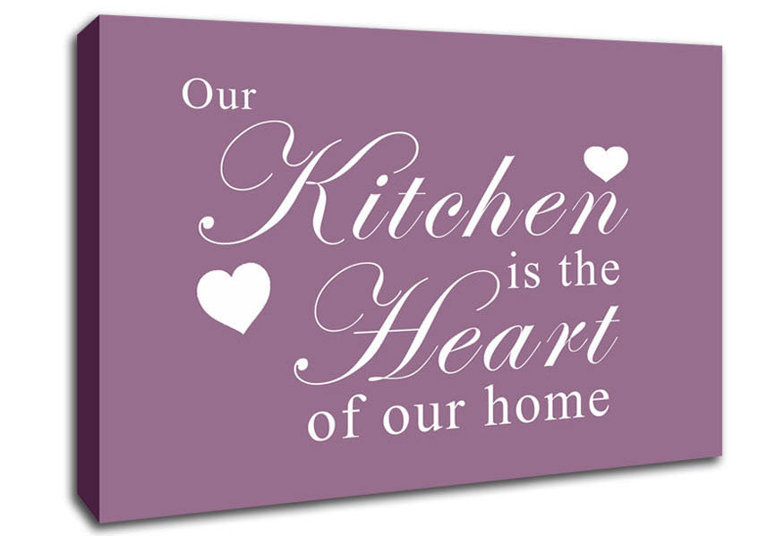 Kitchen Quote Our Kitchen Is The Heart Dusty Pink Canvas Print handmade in the UK. Stretched over a 2 inch thick wooden box frame, ready to hang on your wall.