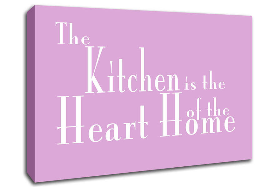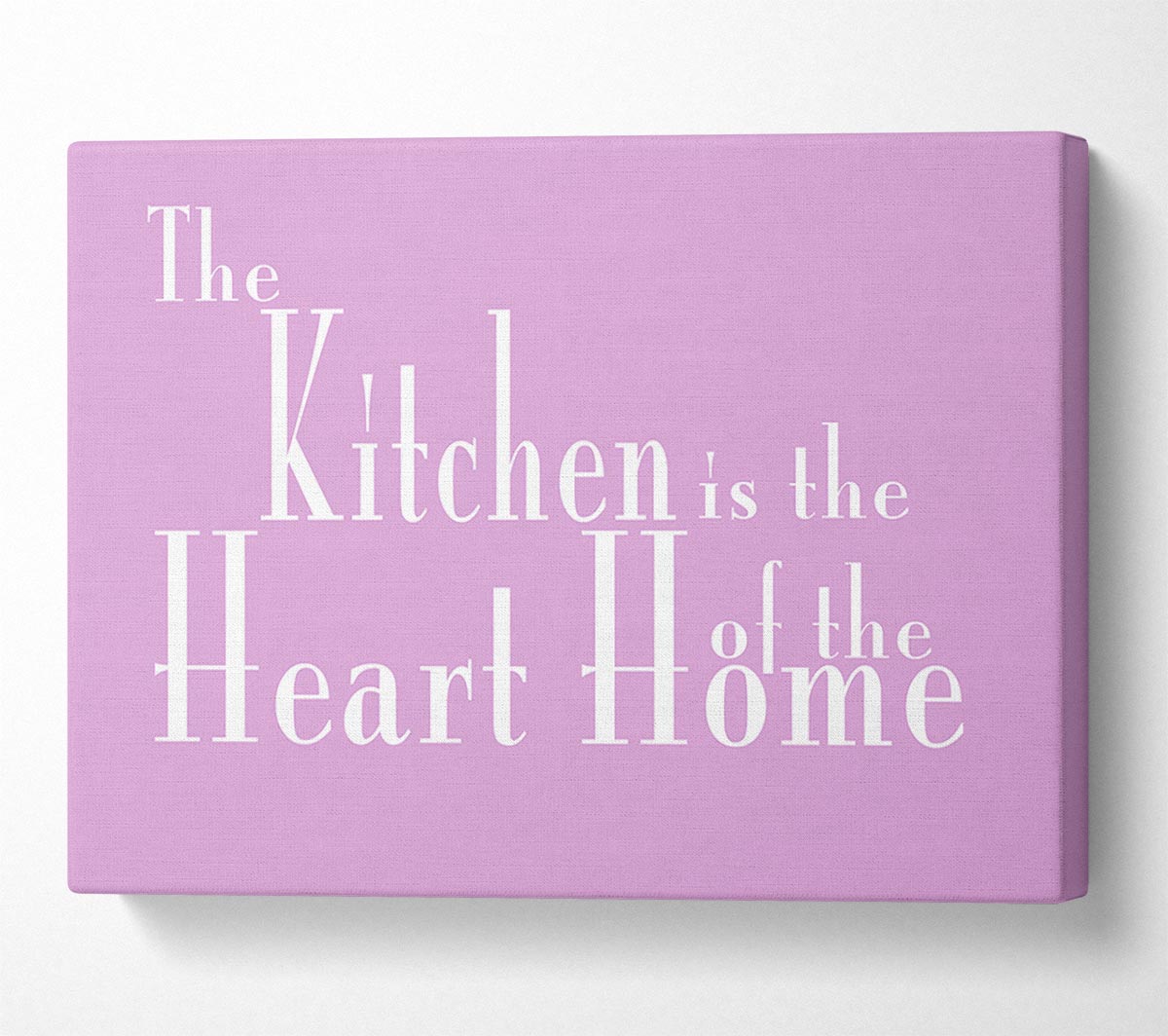Kitchen Quote The Kitchen Is The Heart Of The Home 2 Pink Canvas Print handmade in the UK. Stretched over a 2 inch thick wooden box frame, ready to hang on your wall.