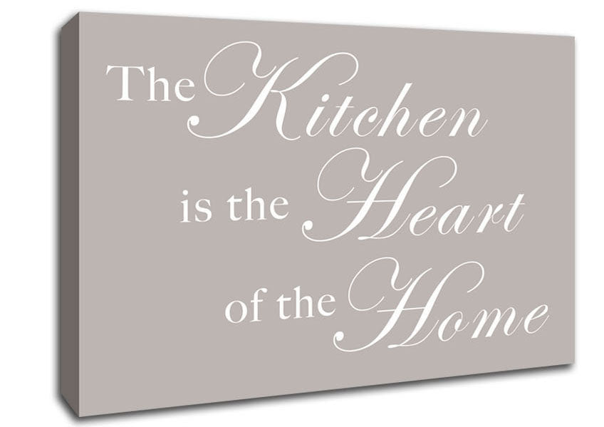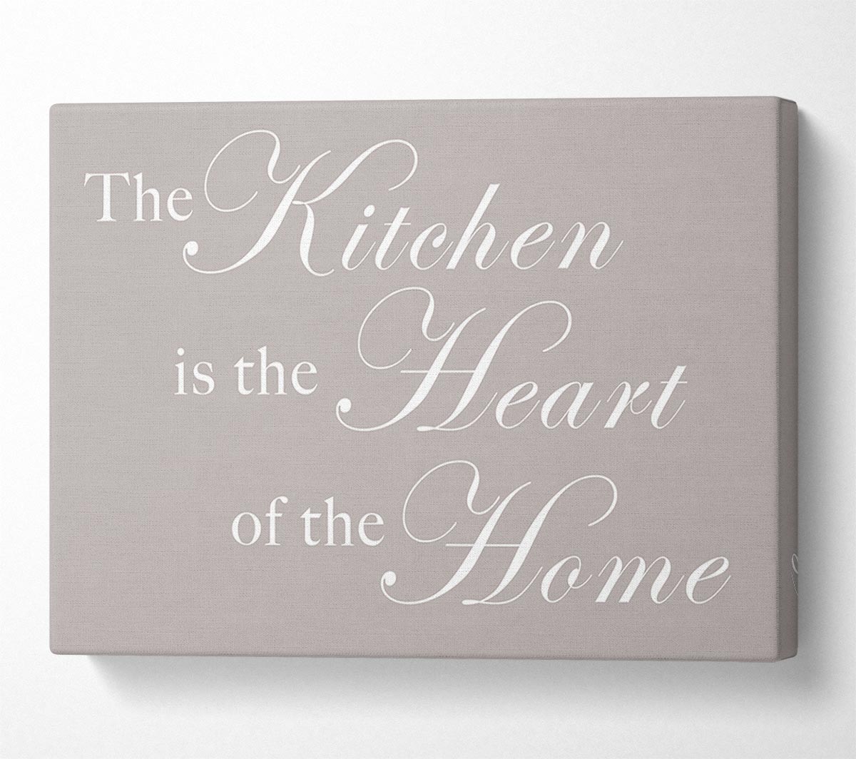 Kitchen Quote The Kitchen Is The Heart Of The Home Beige Canvas Print handmade in the UK. Stretched over a 2 inch thick wooden box frame, ready to hang on your wall.