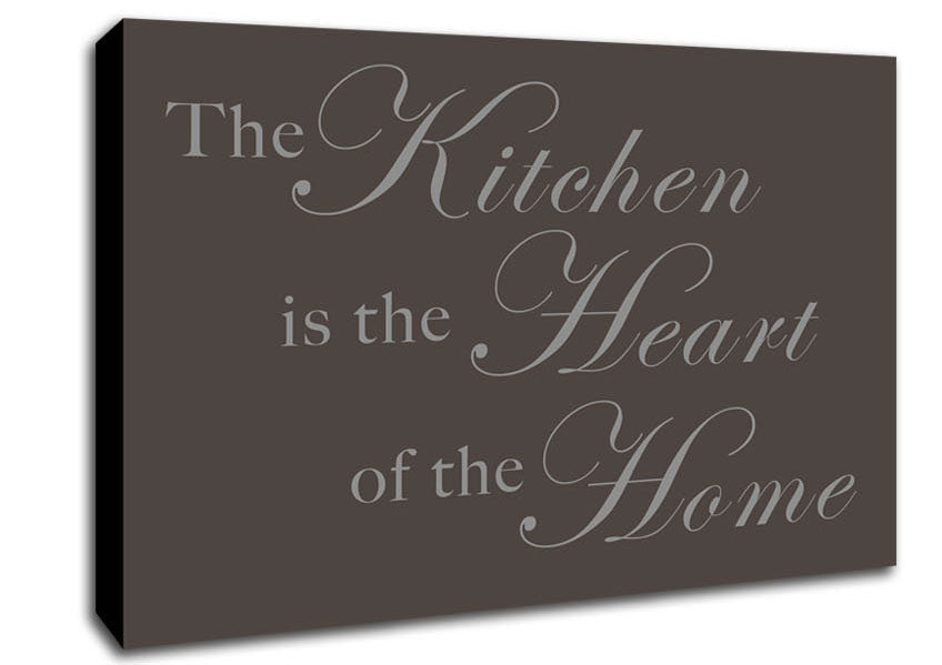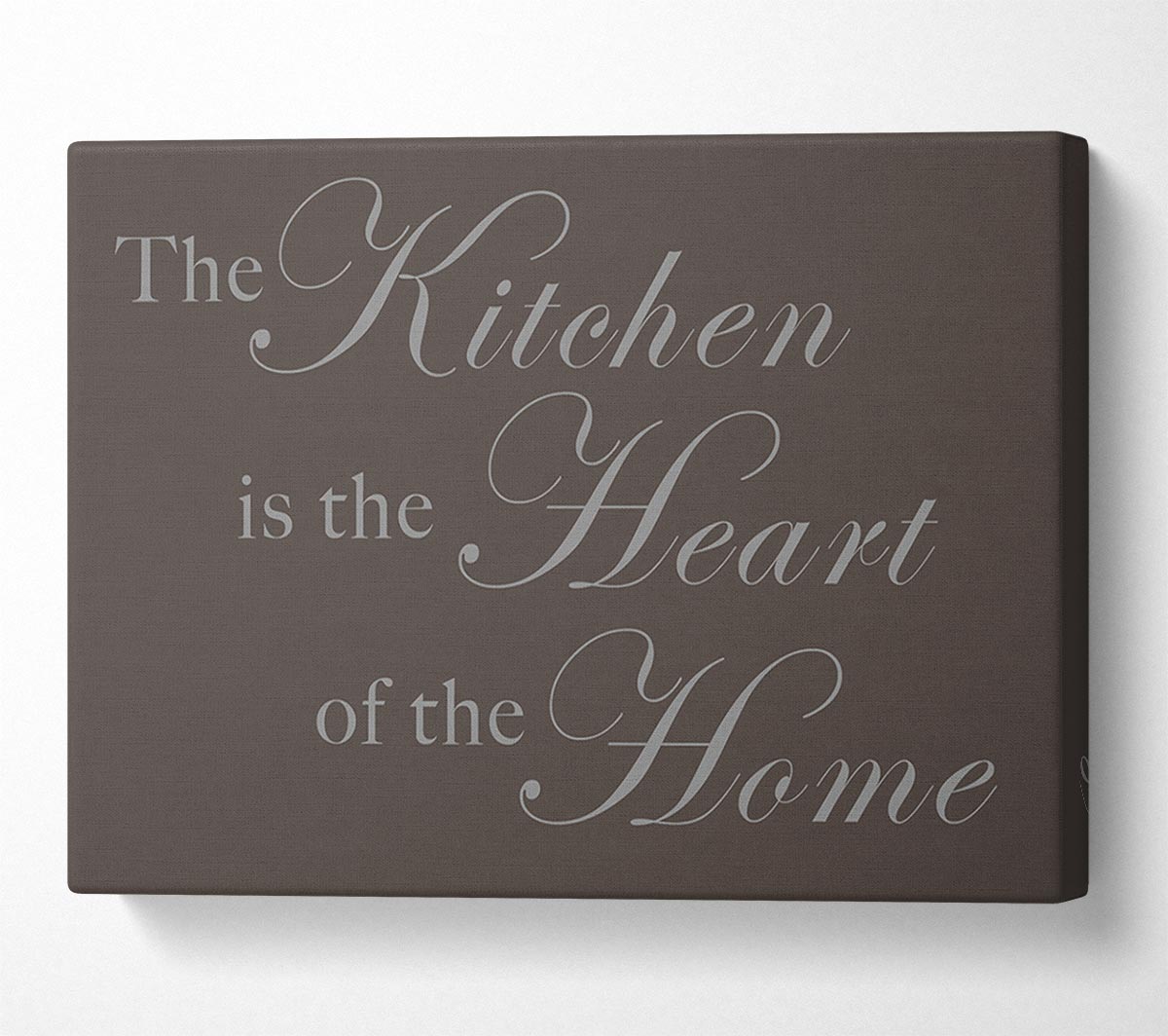 Kitchen Quote The Kitchen Is The Heart Of The Home Chocolate Canvas Print handmade in the UK. Stretched over a 2 inch thick wooden box frame, ready to hang on your wall.