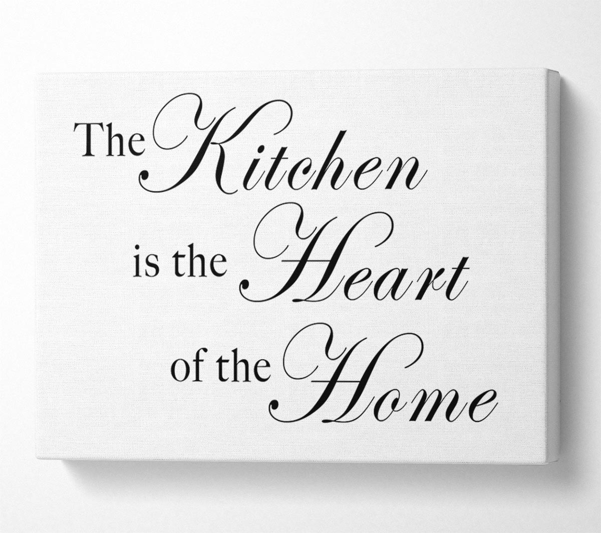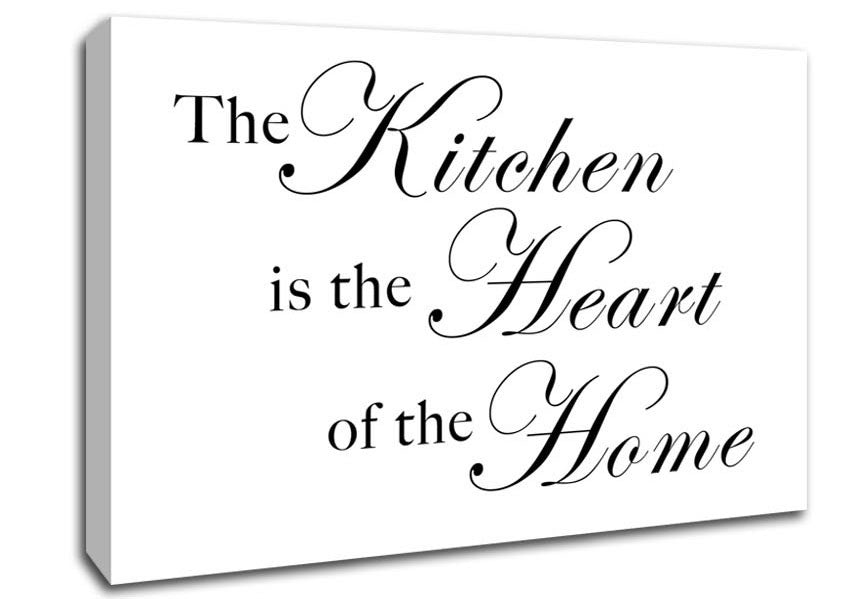 Kitchen Quote The Kitchen Is The Heart Of The Home White Canvas Print handmade in the UK. Stretched over a 2 inch thick wooden box frame, ready to hang on your wall.