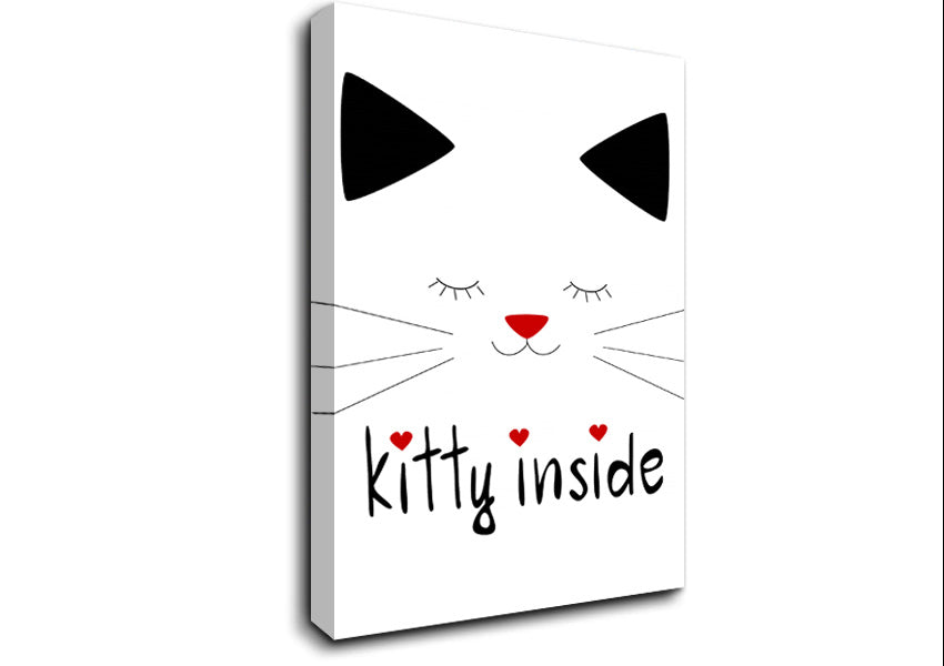 Kitty Inside Canvas Print handmade in the UK. Stretched over a 2 inch thick wooden box frame, ready to hang on your wall.